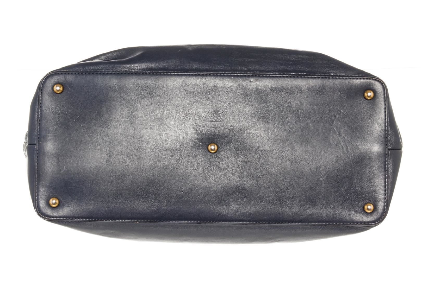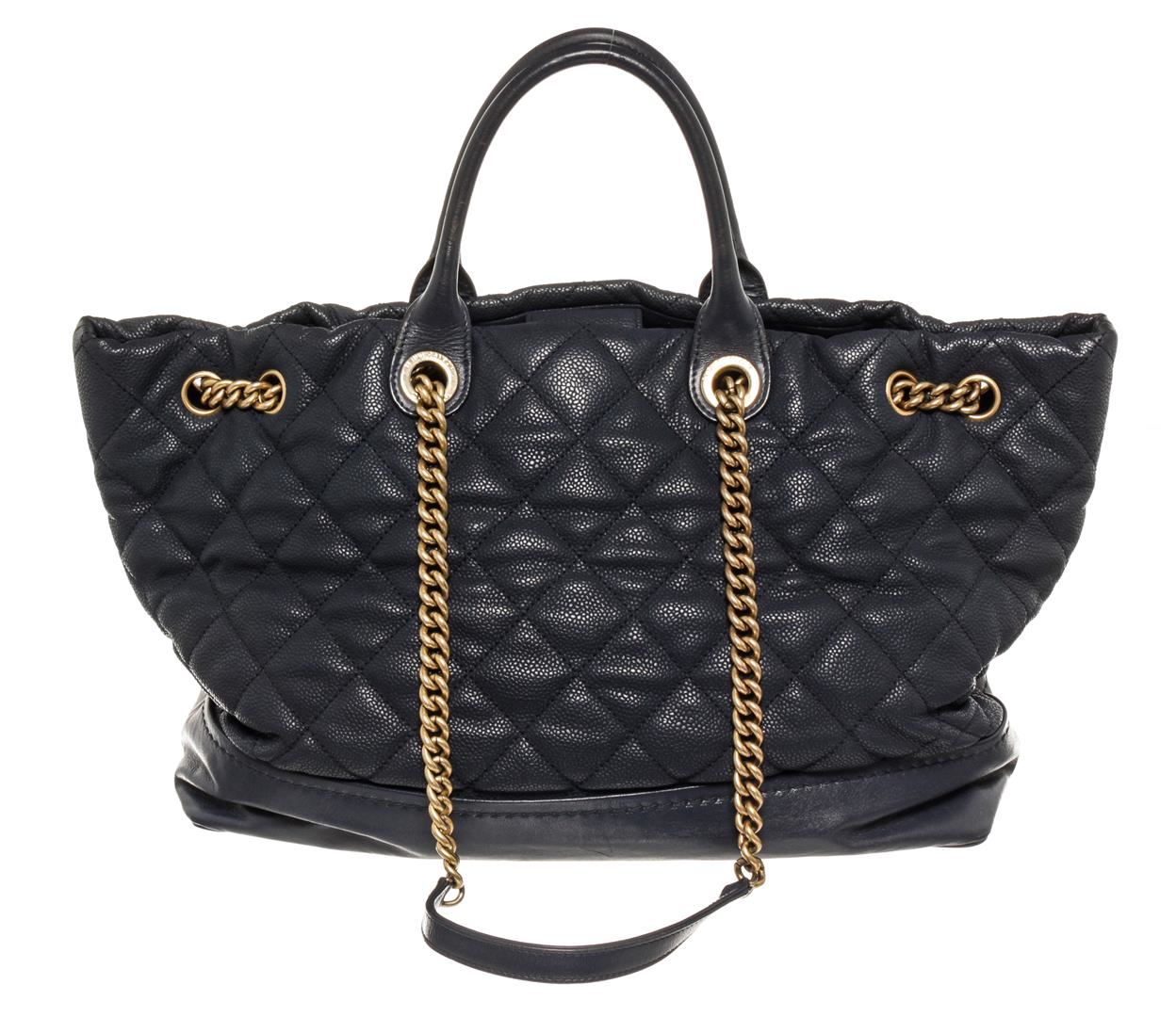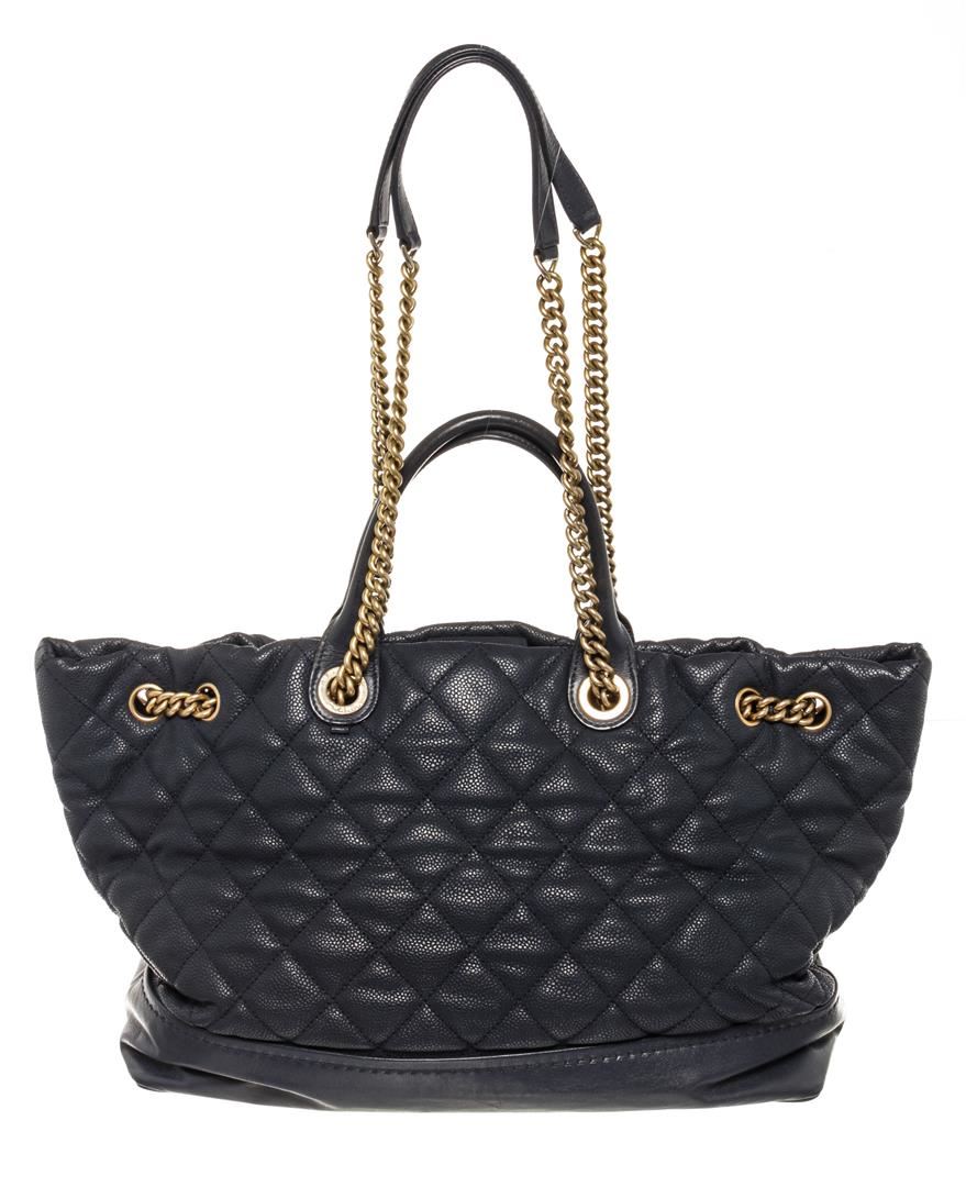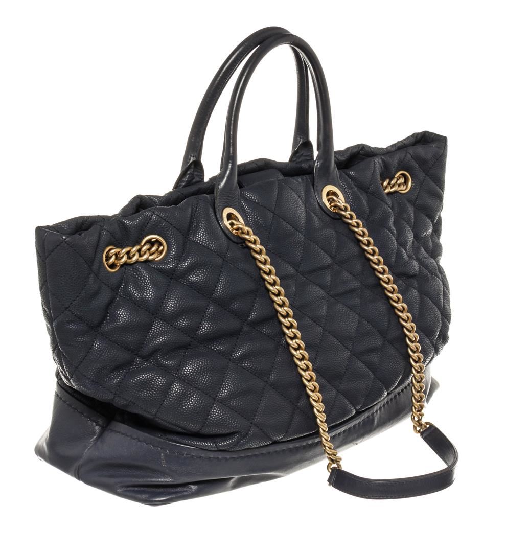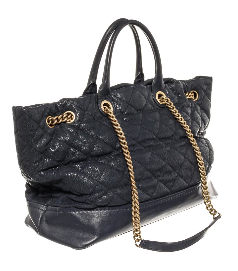 One Chanel Globetrotter Drawstring. Item is sold AS-IS. All available information is listed in the description and shown in the photo. Chanel Globetrotter Drawstring Blue Caviarskin. Features gold hardware, blue leather handles, red canvas interior, and a gold button closure.