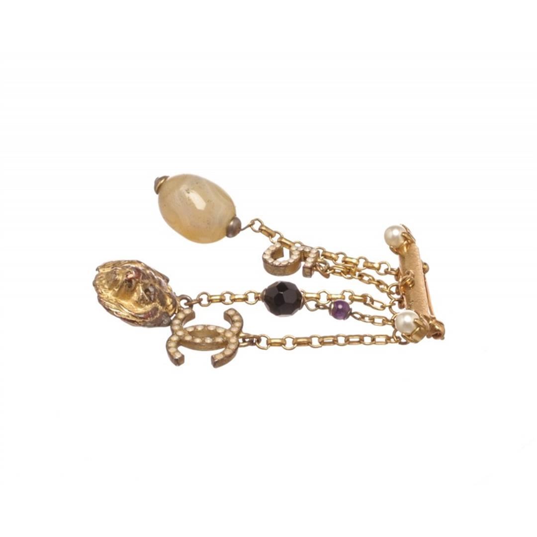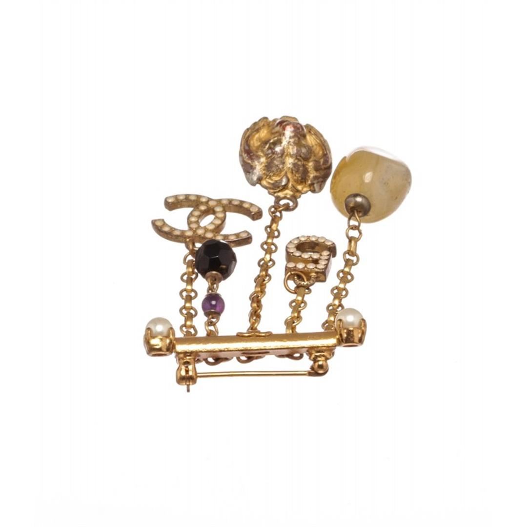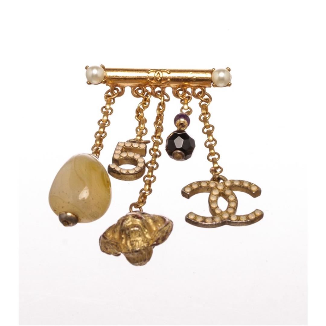 One Chanel Gold Bar CC Dangle Charm Brooch 01A. Pin backing dangle brooch from 2001 Fall collection.