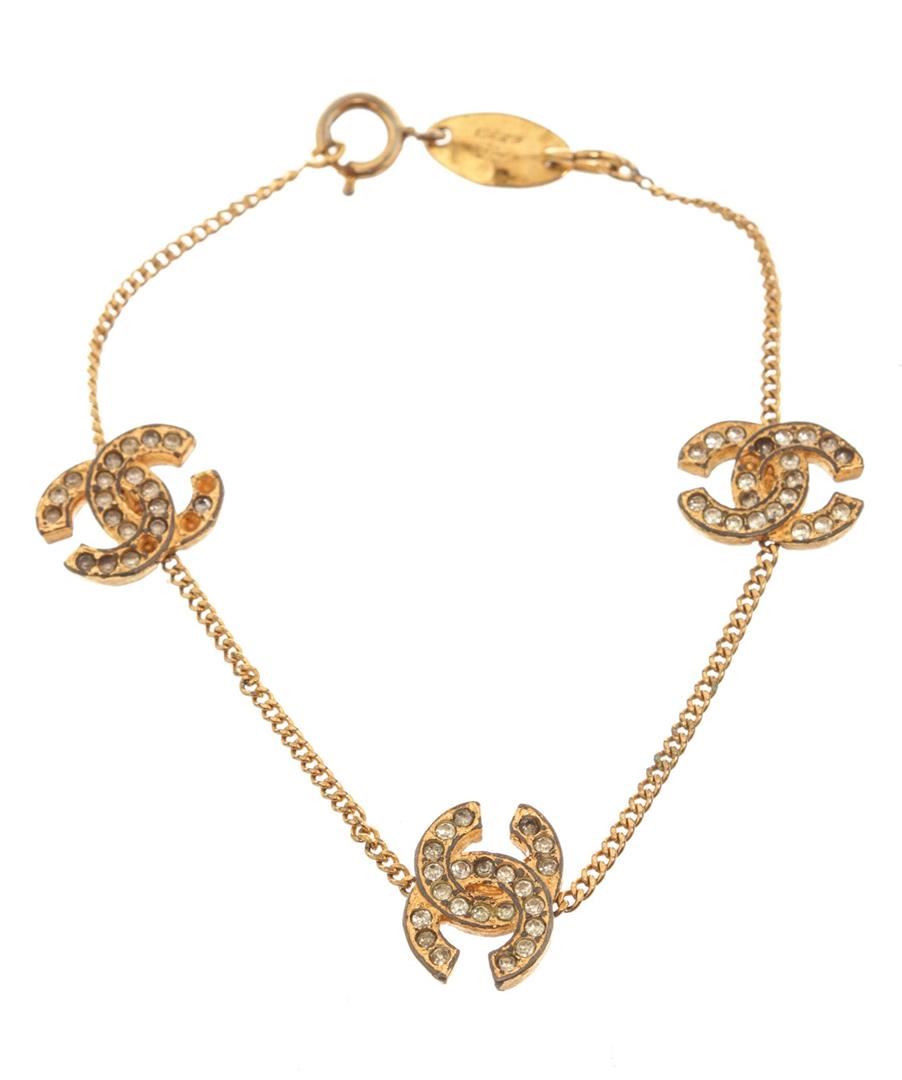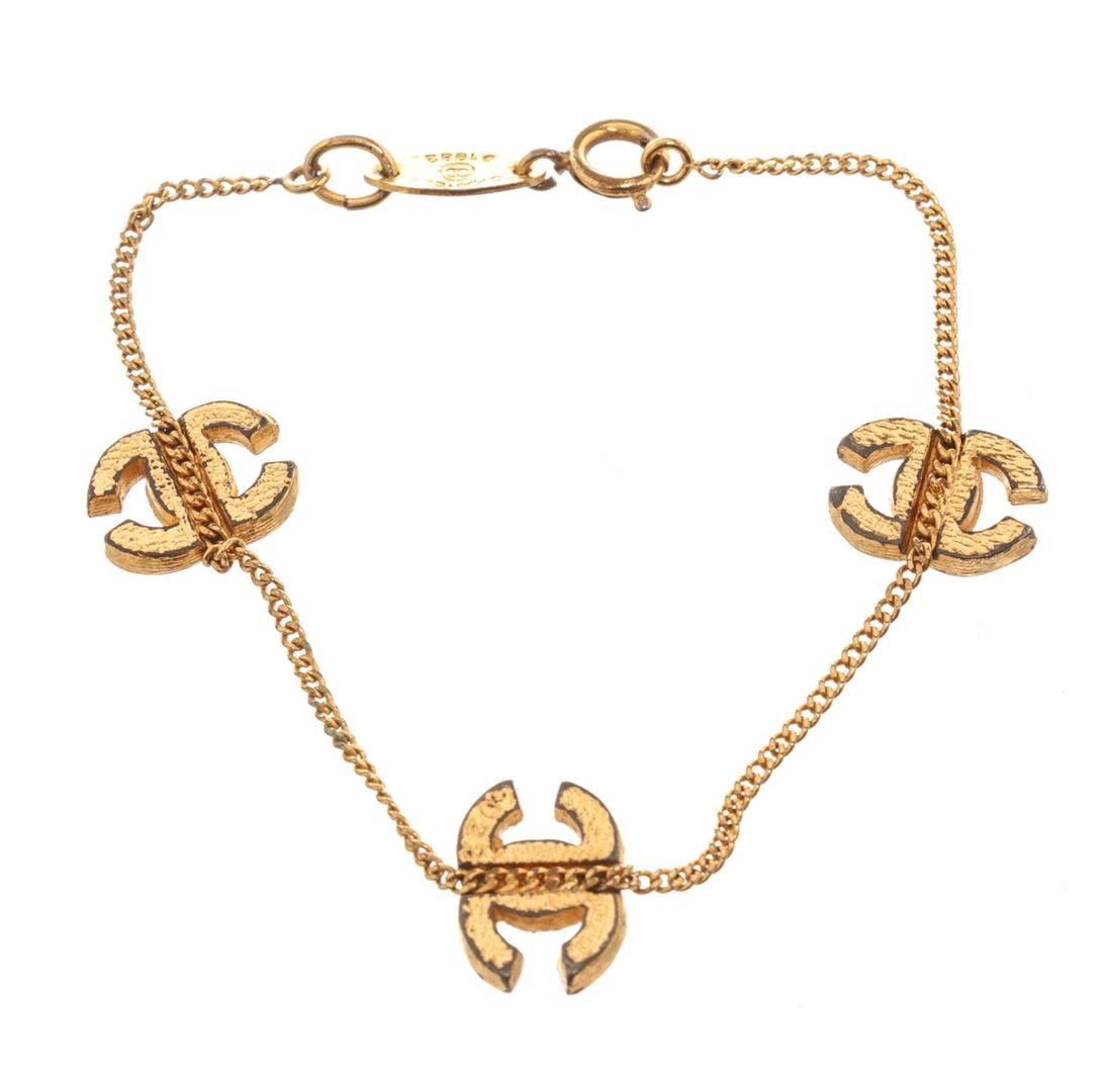 Chanel Gold CC Charm Bracelet with gold-tone hardware.