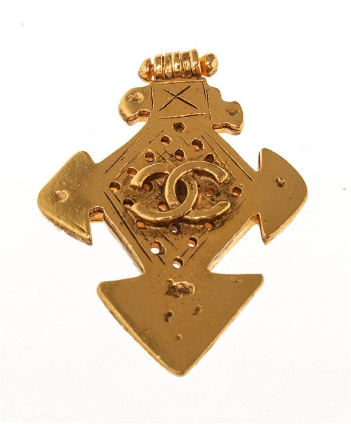Chanel Gold CC Cross Brooch. Chanel Gold CC Cross Brooch with glod-tone hardware and CC turn-lock closure.