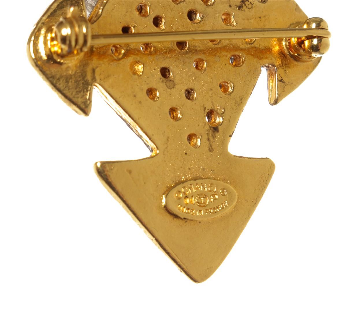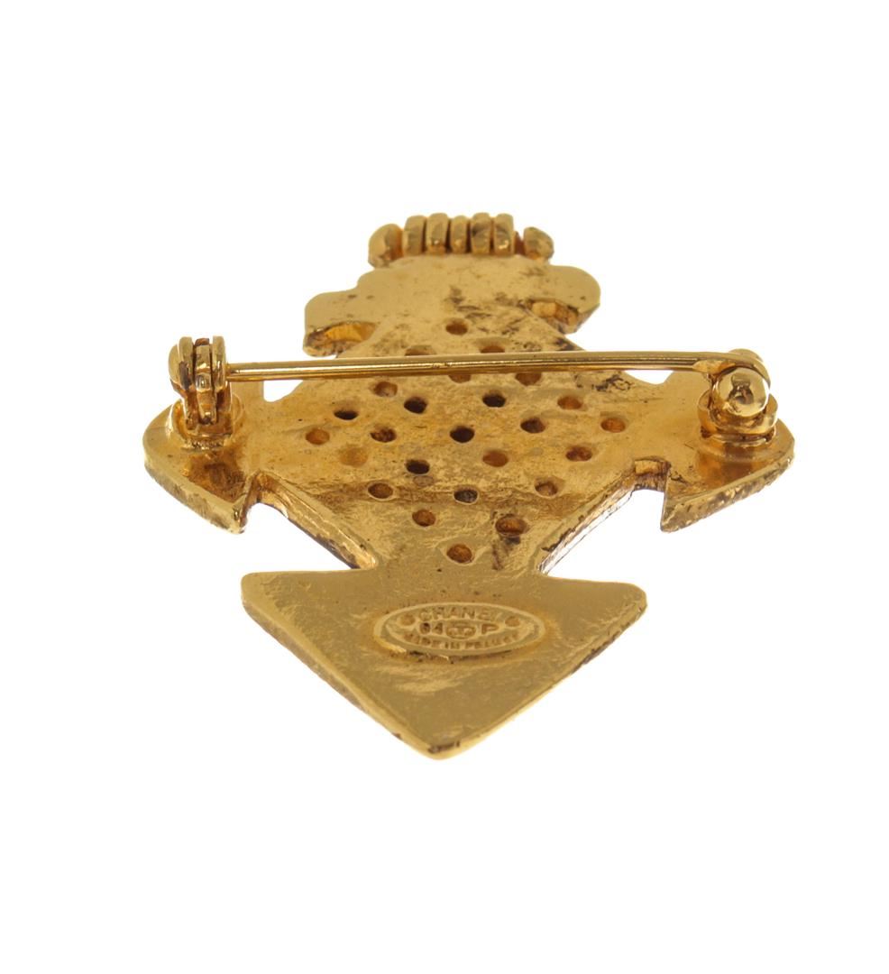 Chanel Gold CC Cross Brooch. All available information is listed in the description and shown in the photos. Chanel Gold CC Cross Brooch with gold tone metal hardware.