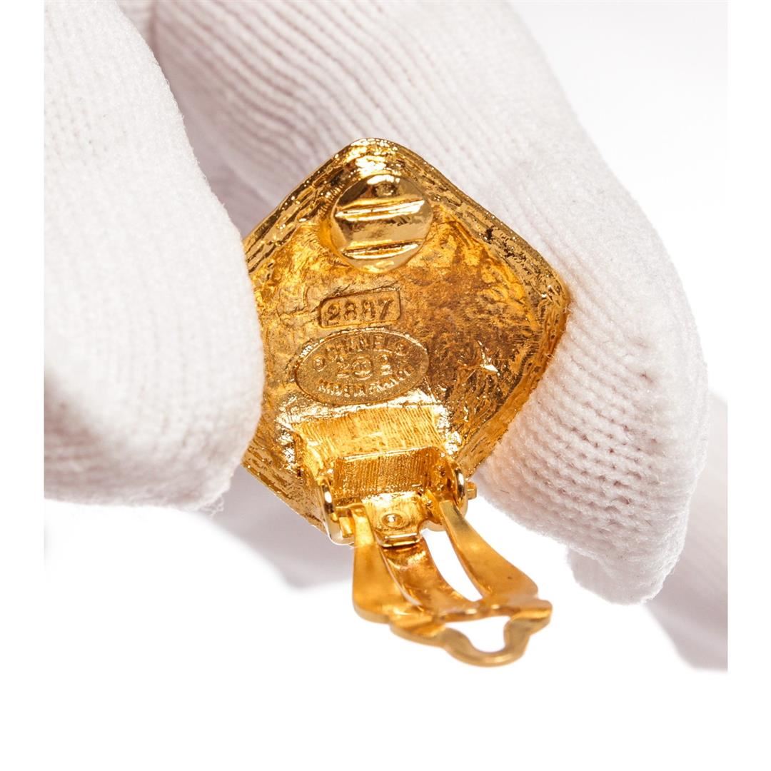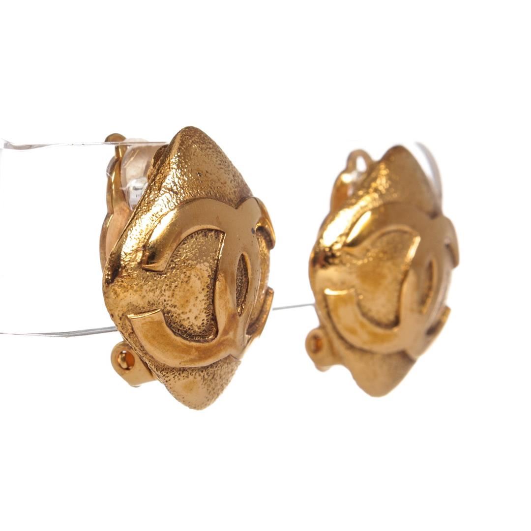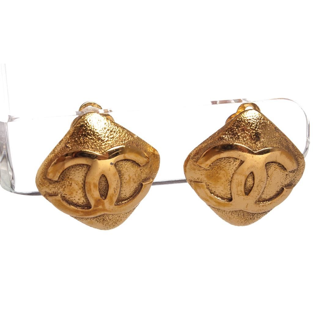 Chanel Gold CC Diamond Shape Vintage Clip On Earrings. Clip On Backing. Dimensions = 1"x1"/2.5cmx2.5cm. Item is pre-owned.