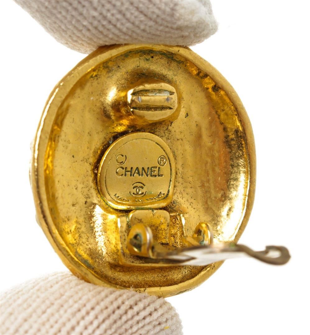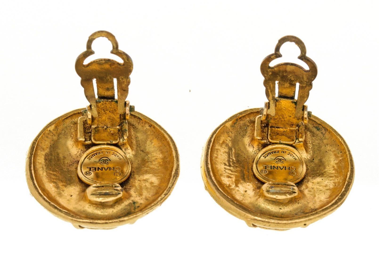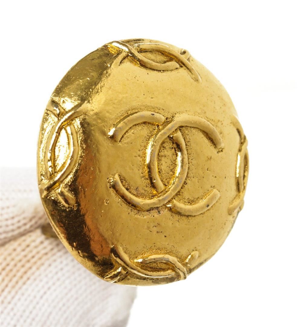 Chanel Gold CC Disc Earring with gold-tone hardware and turn lock closure.
