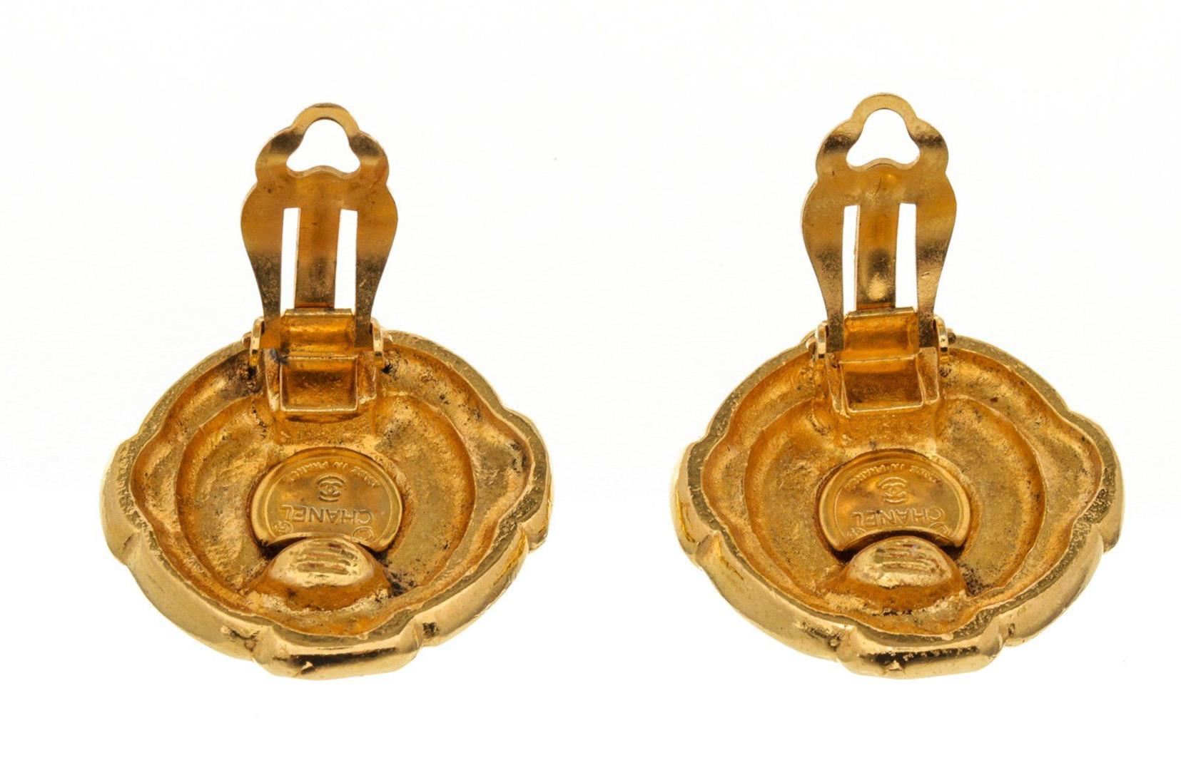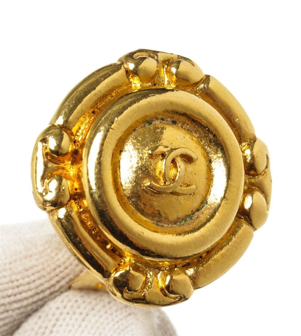 Chanel Gold CC Disc Earrings with gold tone hardware.