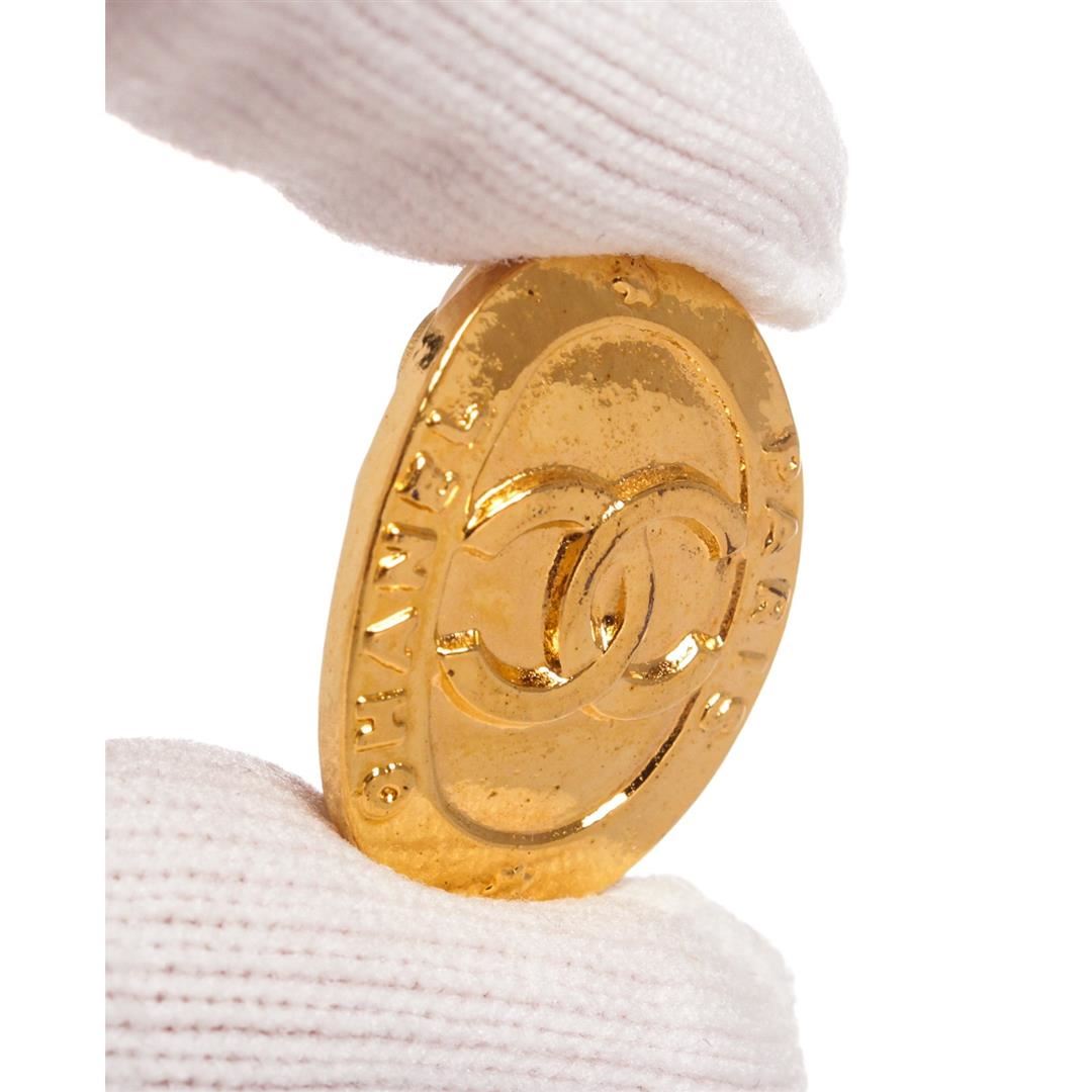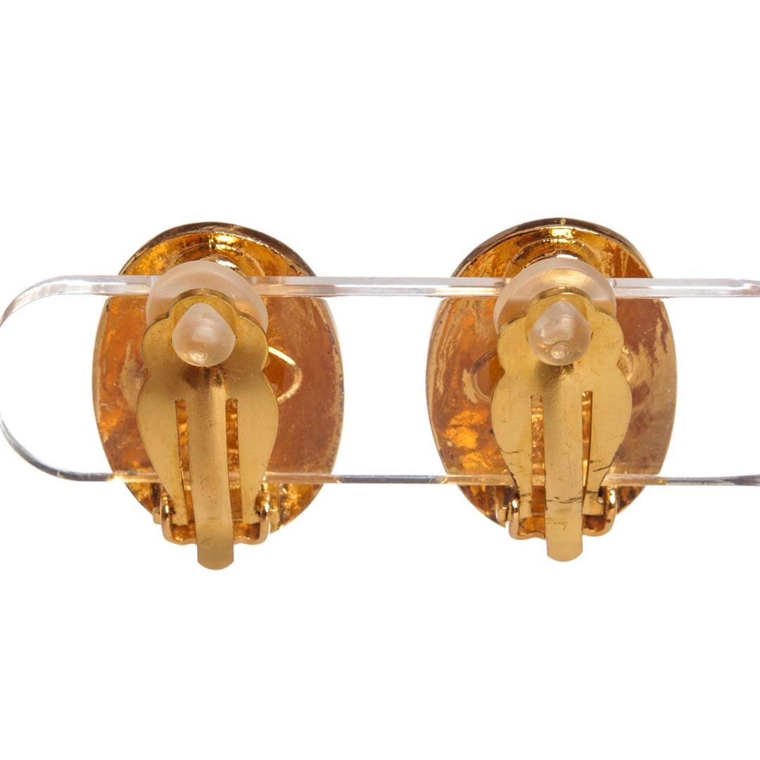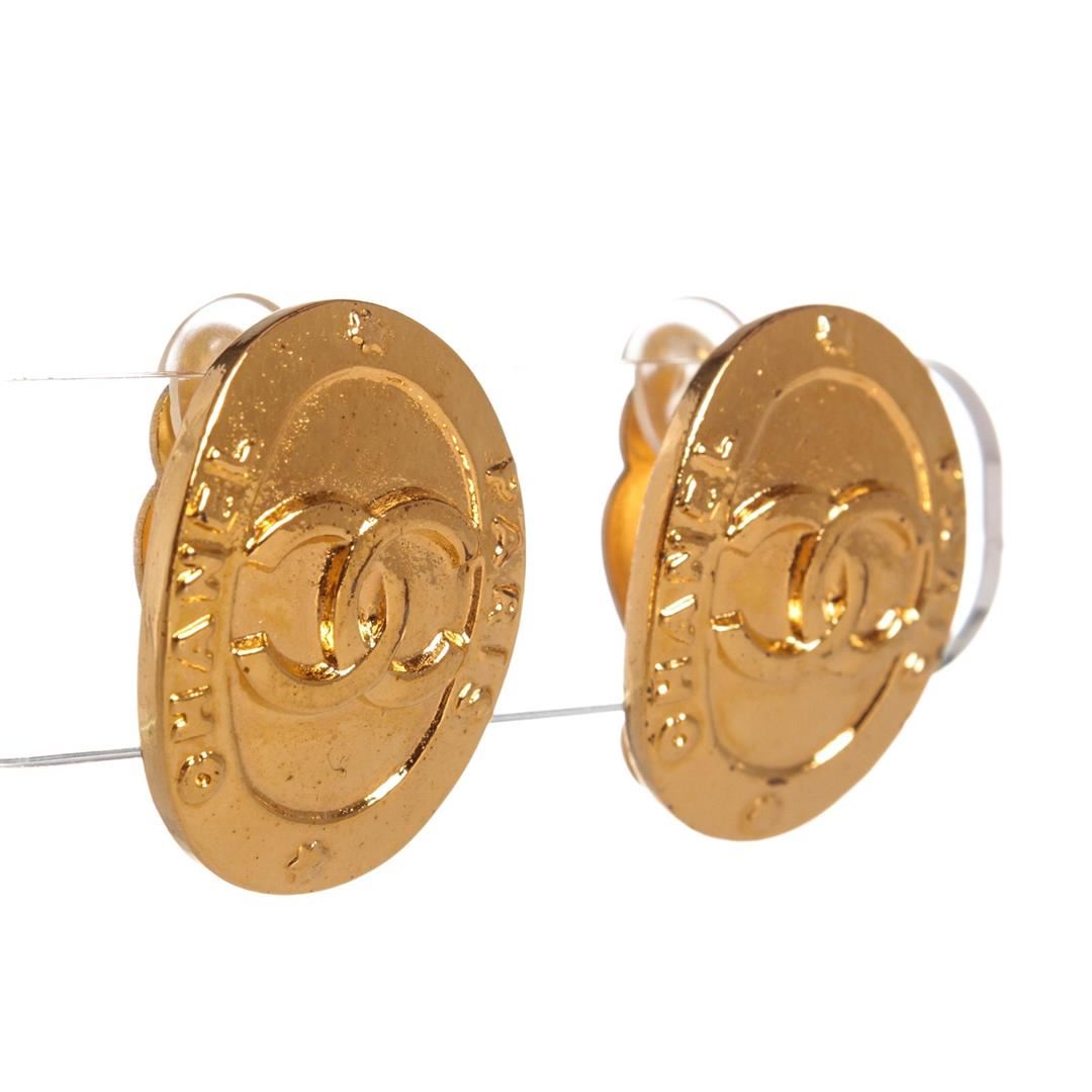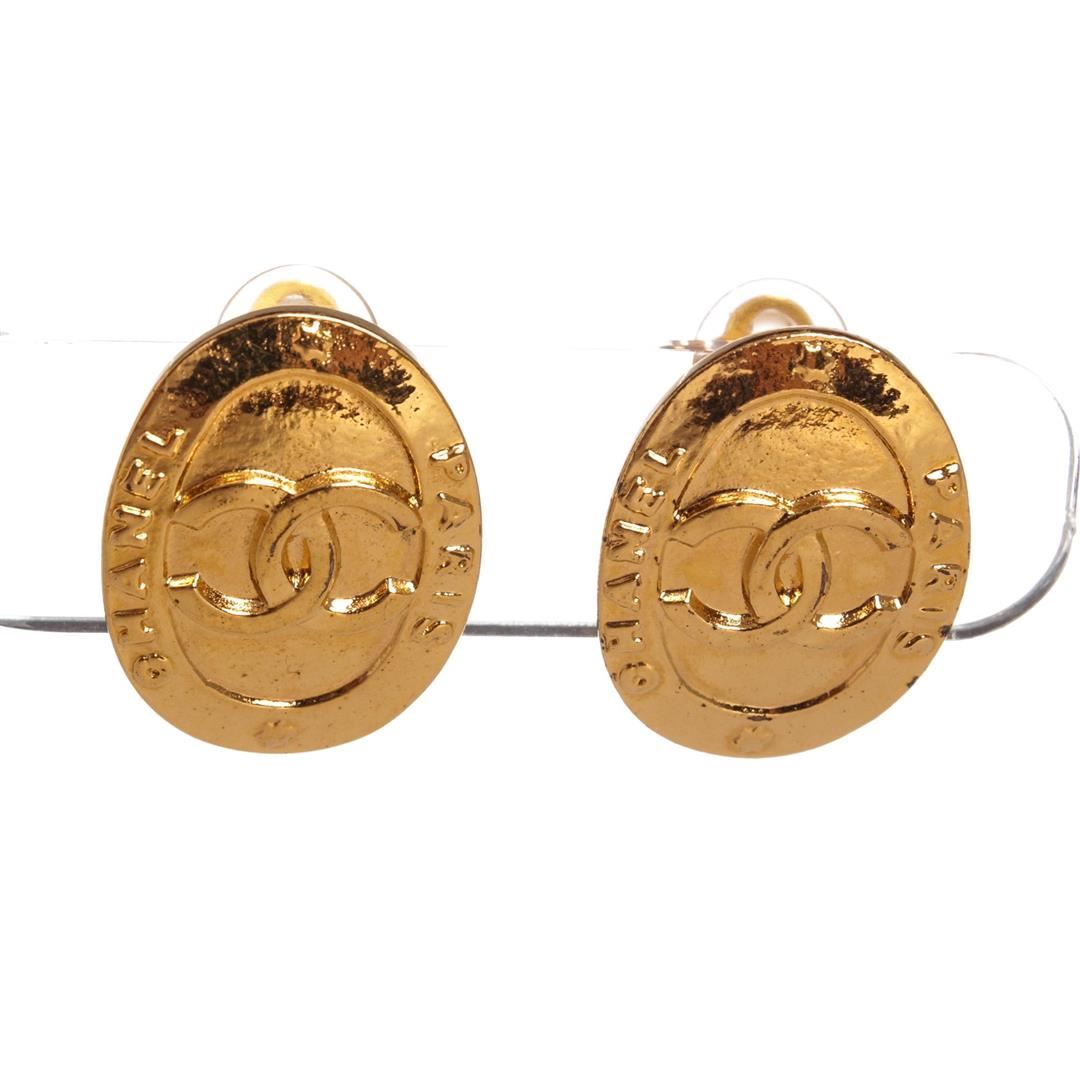 Chanel Gold CC Oval Disk Vintage Clip On Earrings. Clip On Backing. Dimensions = .75"x1"/1.9cmx2.5cm. Item is pre-owned.