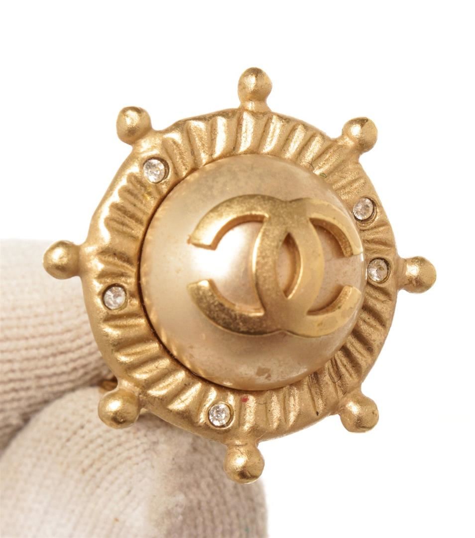 One Chanel Gold CC Pearl Earring. Item is sold AS-IS. All available information is listed in the description and shown in the photo. Chanel Gold CC Pearl Earring with gold-tone hardware and turn lock closure.