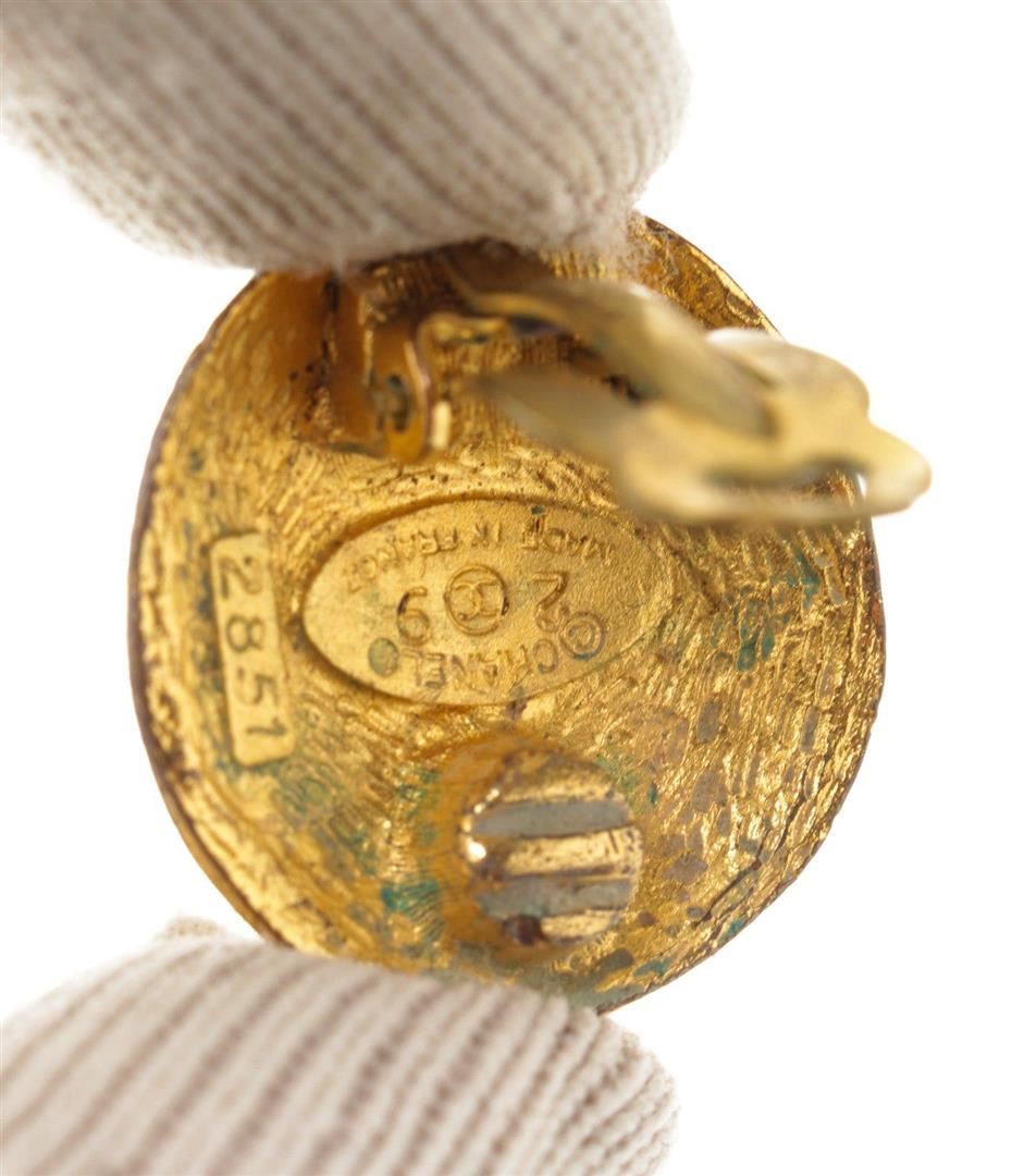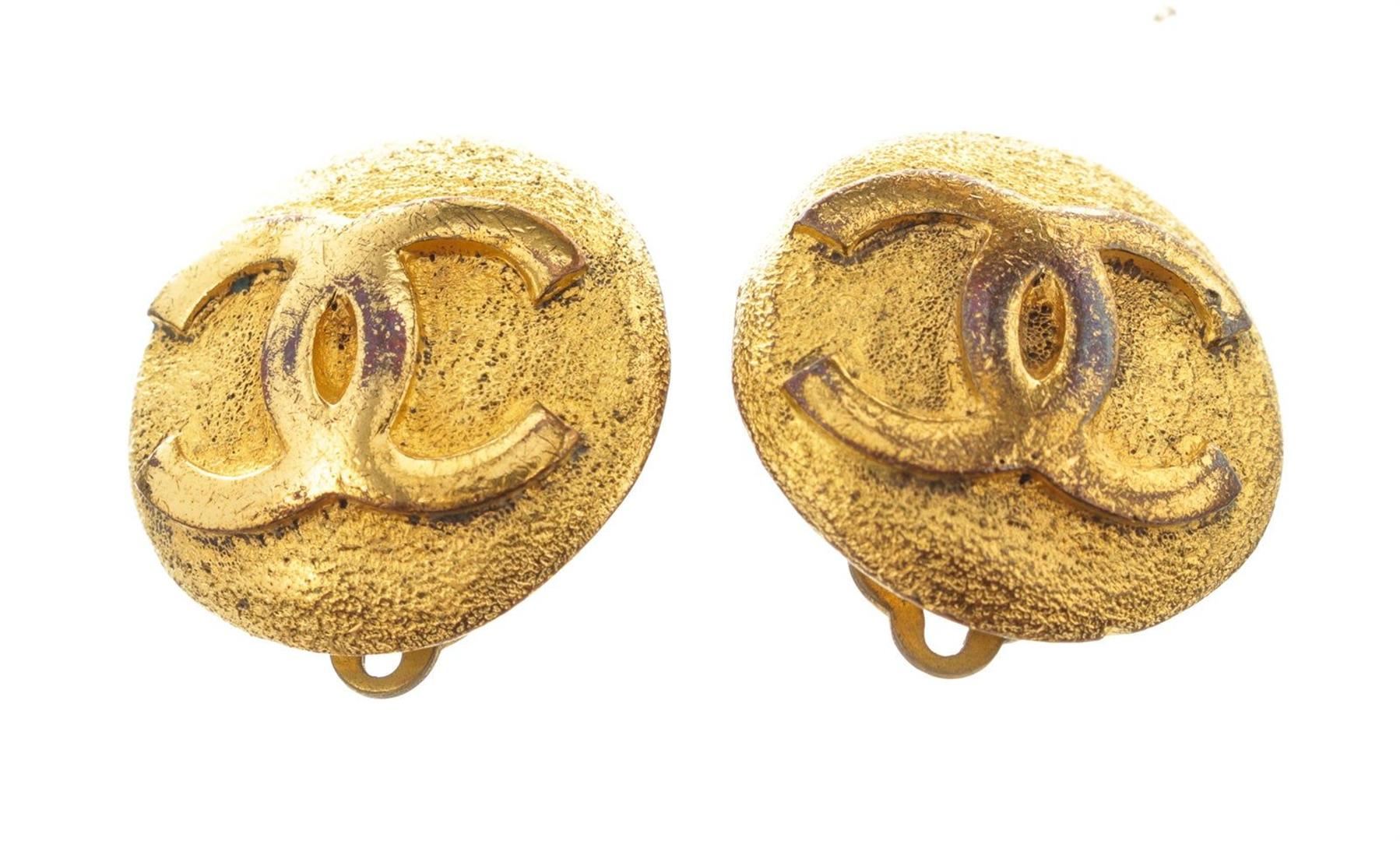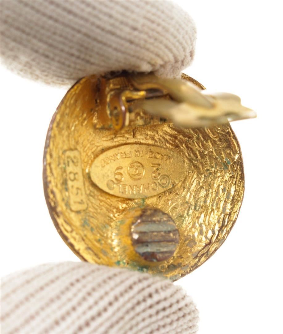 Chanel Gold CC Round Shape Earrings with gold-tone hardware.