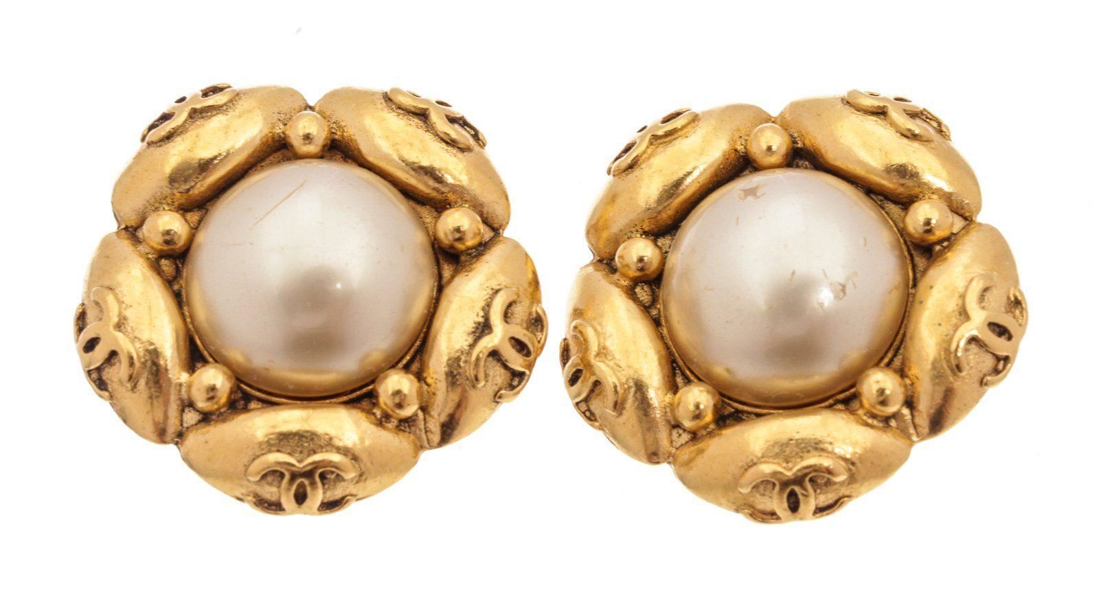 Chanel Gold Camelia Pearl Earrings with glod-tone hardware and turn-lock closure. Measurements: Length: 1.25 in / 3 cm Width: 1.25 in / 3 cm 0.25 in / 1 cmCONDITION: Pre-Owned Good overall, please see photographs for detail.