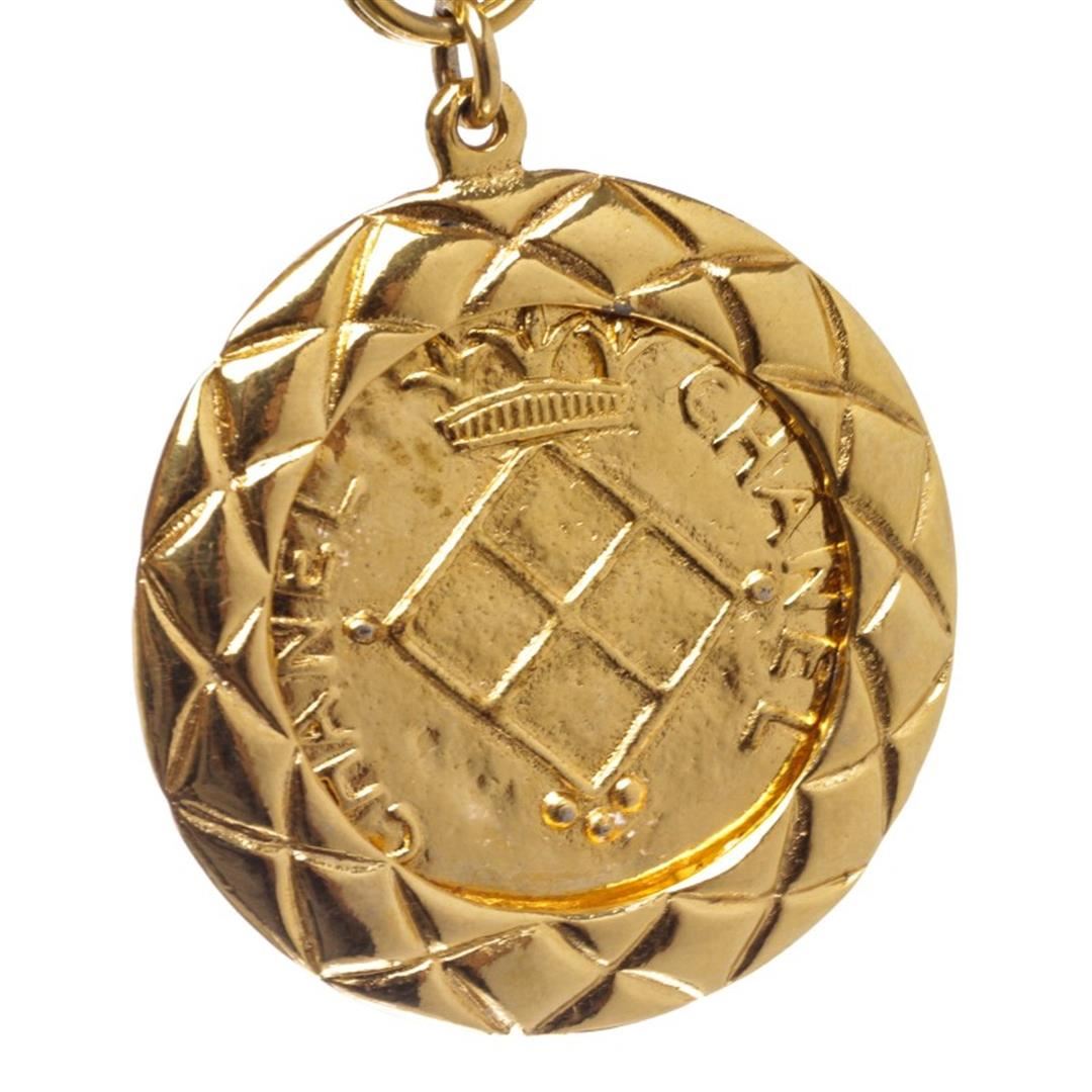 One Chanel Gold Chain Link Medallion Long Necklace. Chanel gold chain link medallion drop pendant long necklace. Overall clasp closure.