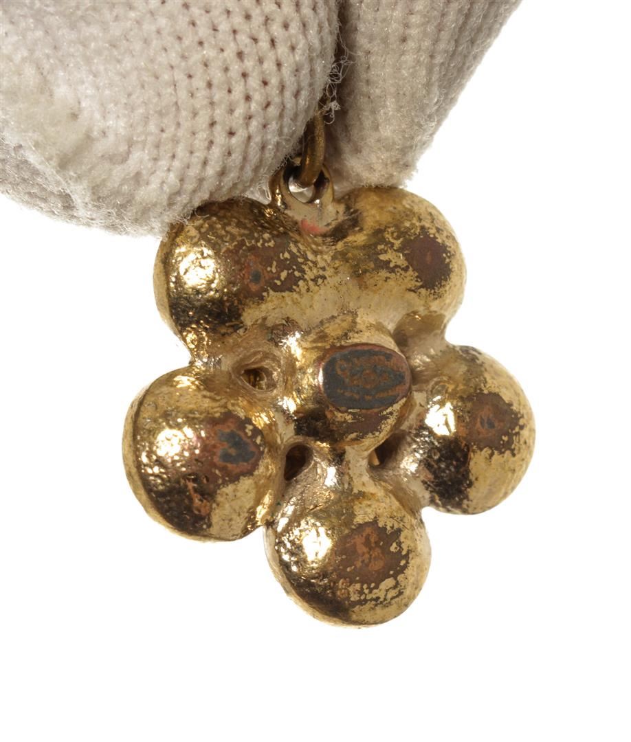 Chanel Gold Flower Necklace. All available information is listed in the description and shown in the photos. Chanel Gold Flower Necklace with gold tone hardware, flower pendant with CC logo with rhinestones.