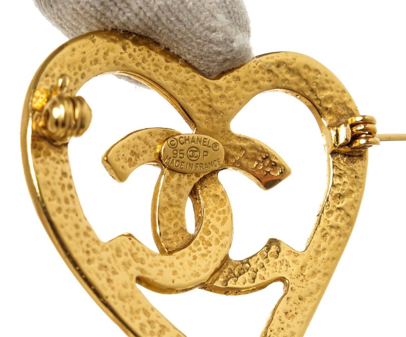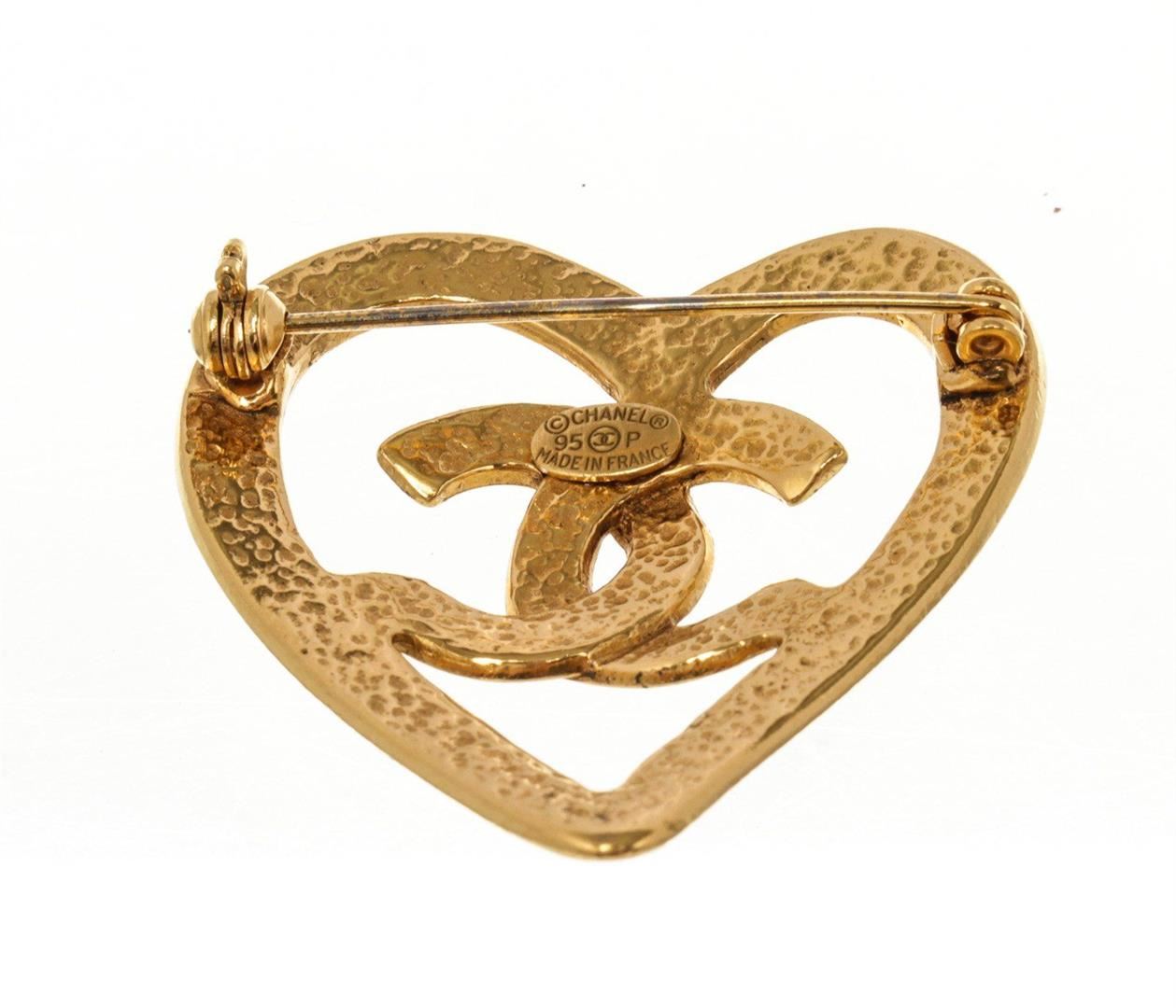 Chanel Gold Heart CC Brooch with gold-tone hardware and turn lock closure.