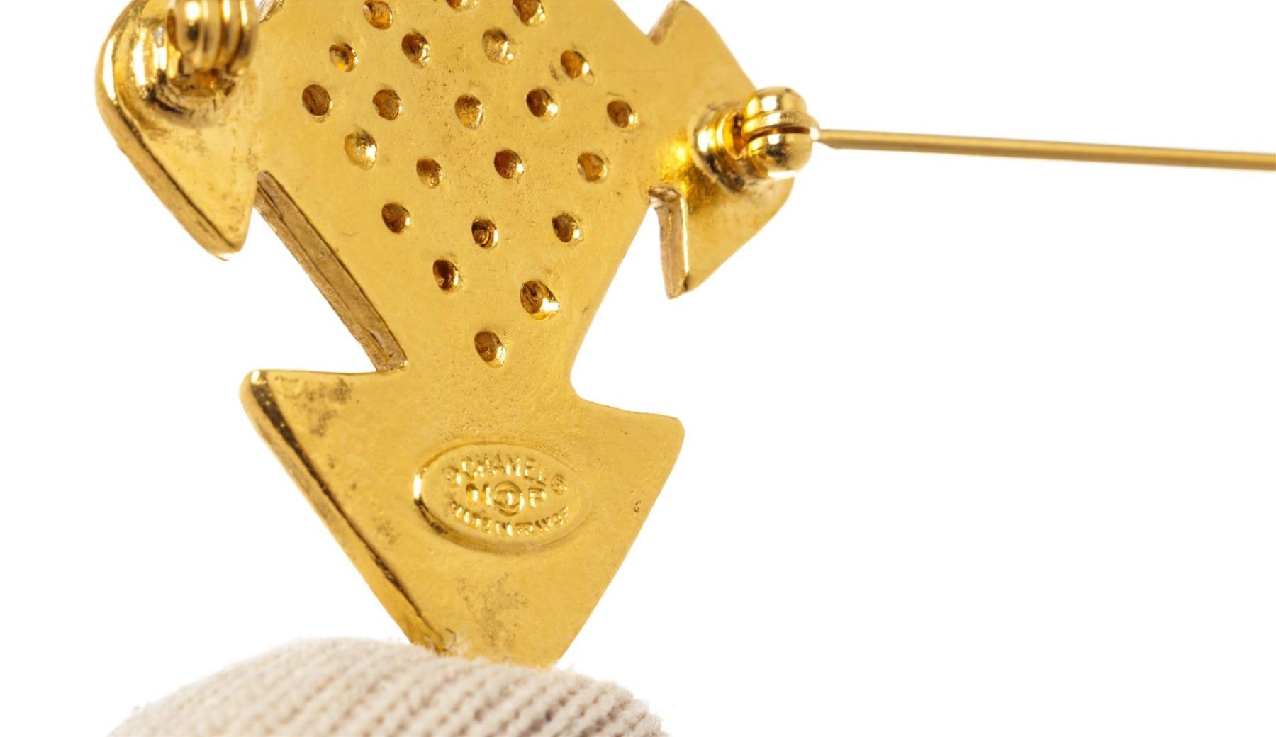 Chanel Gold Metal CC Cross Brooch. All available information is listed in the description and shown in the photos. Chanel Gold Metal CC Cross Brooch with it features a cc hammered cross with a perforated center and is crafted from gold plated metal, gold-tone hardware, pin closure on back. 1.25"L x 1.75"H, 3.17 x 4.44 Cm