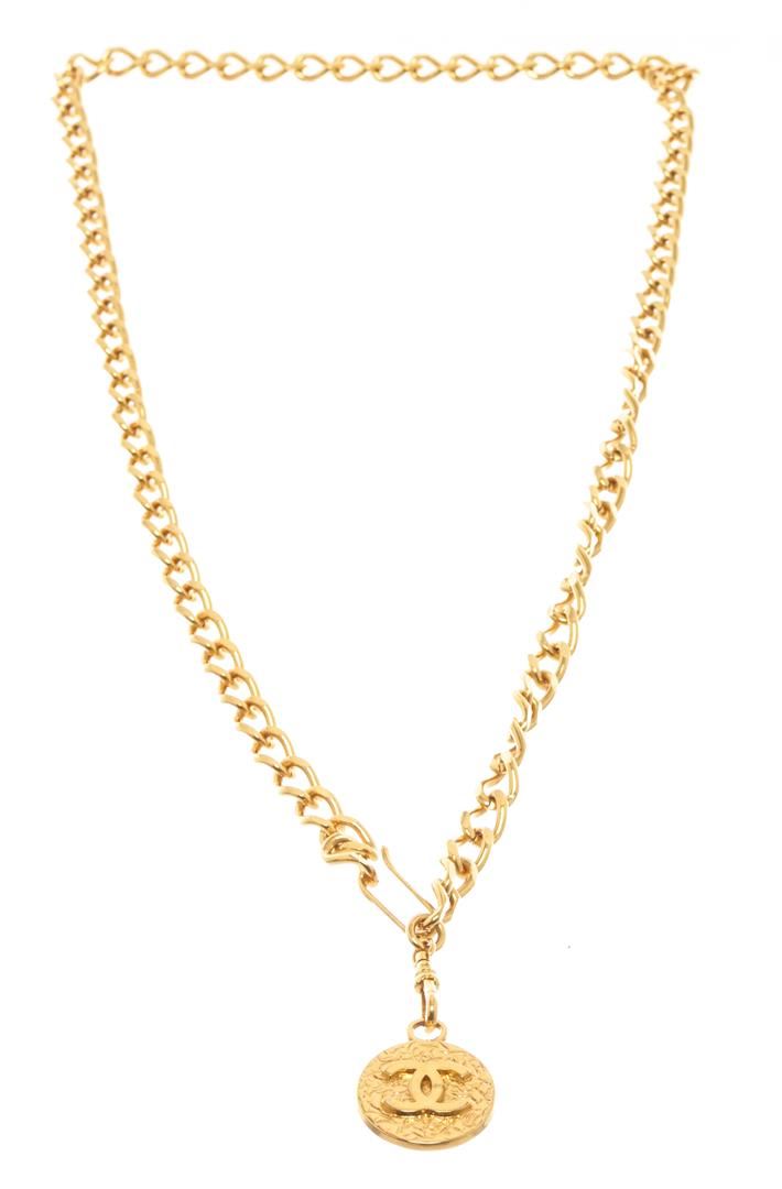 Chanel Gold Metal Round CC Pendant. All available information is listed in the description and shown in the photos. Chanel Gold Metal Round CC Pendant with gold metal, interlocking cc logo, gold-tone hardware, clasp closure.