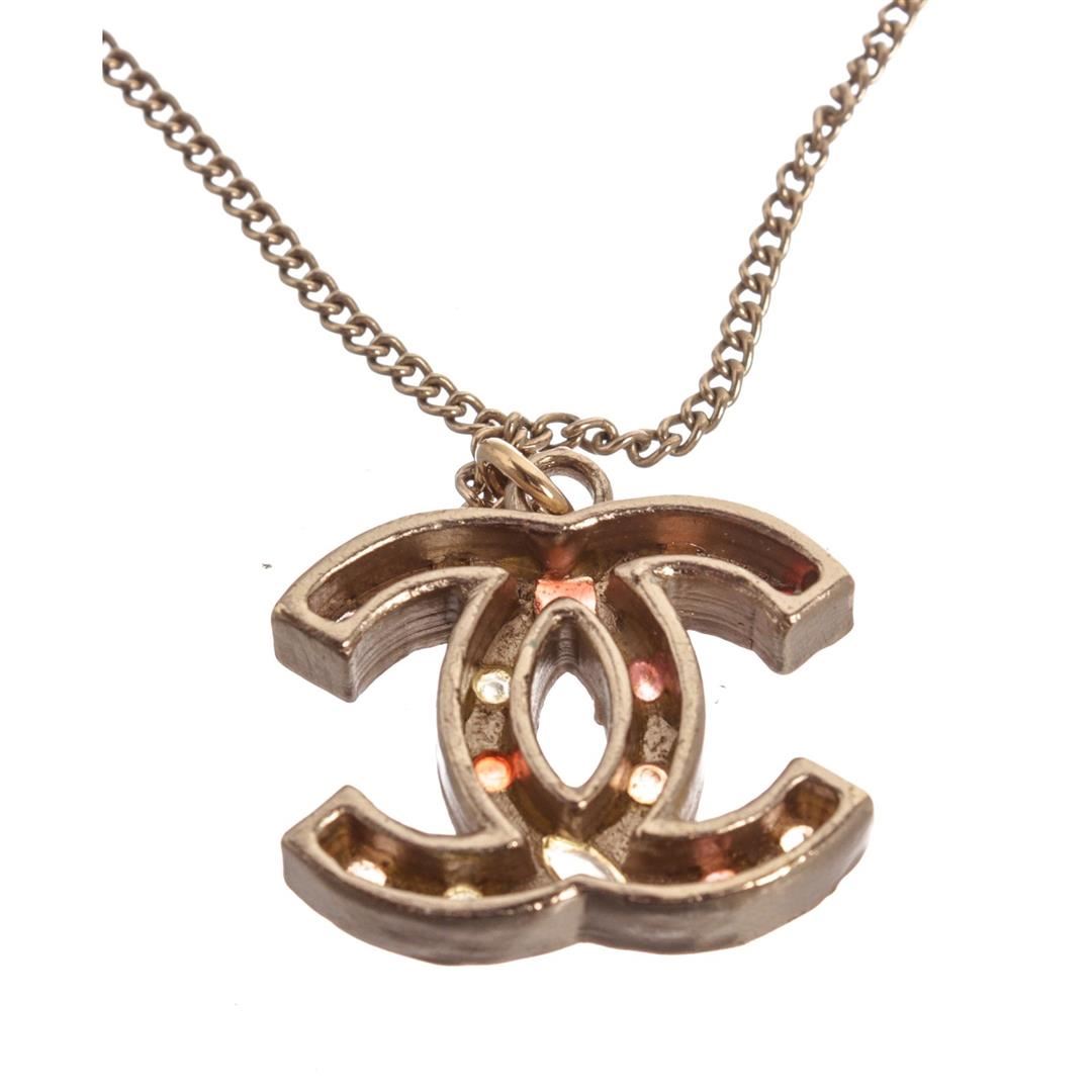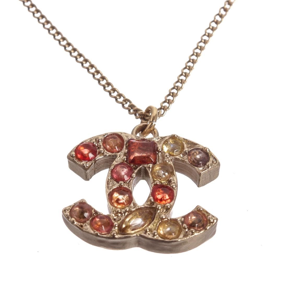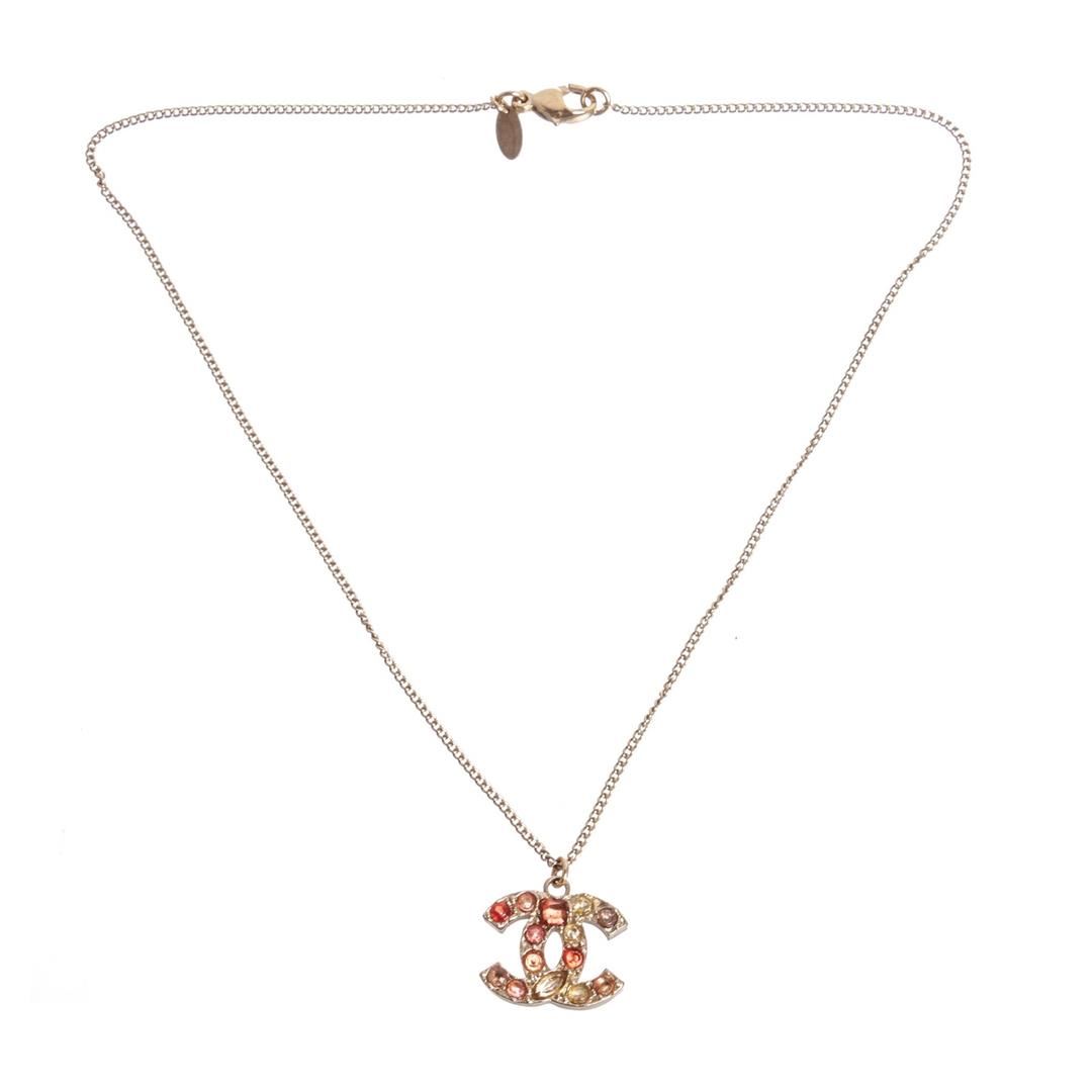 Chanel Gold Multicolor Rhinestone CC Necklace 07A. Overall lobster clasp closure. From the 2007 Fall collection. Dimensions = Necklace: 16"/40cm . Item is pre-owned.
