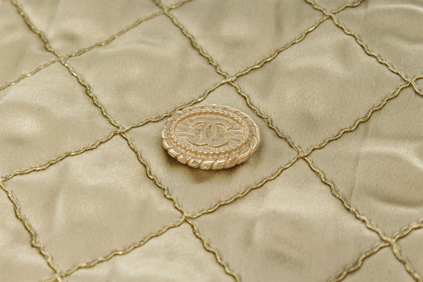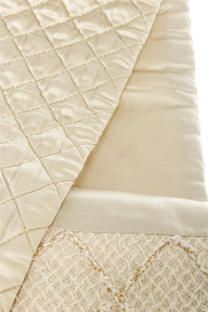 Chanel gold color quilted shawl with gold-tone hardware CC logo.