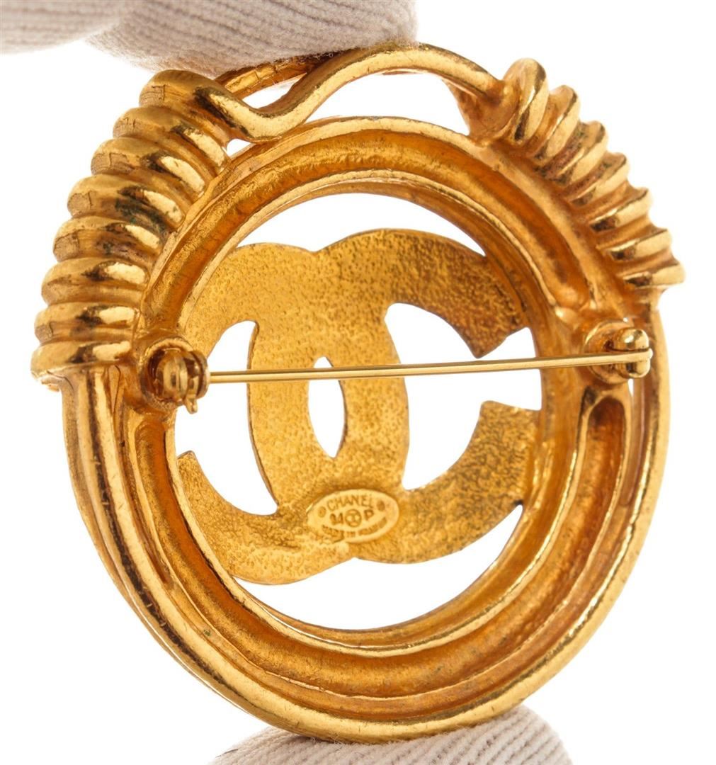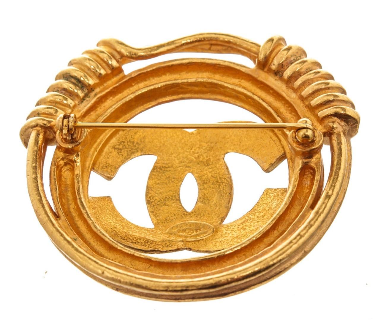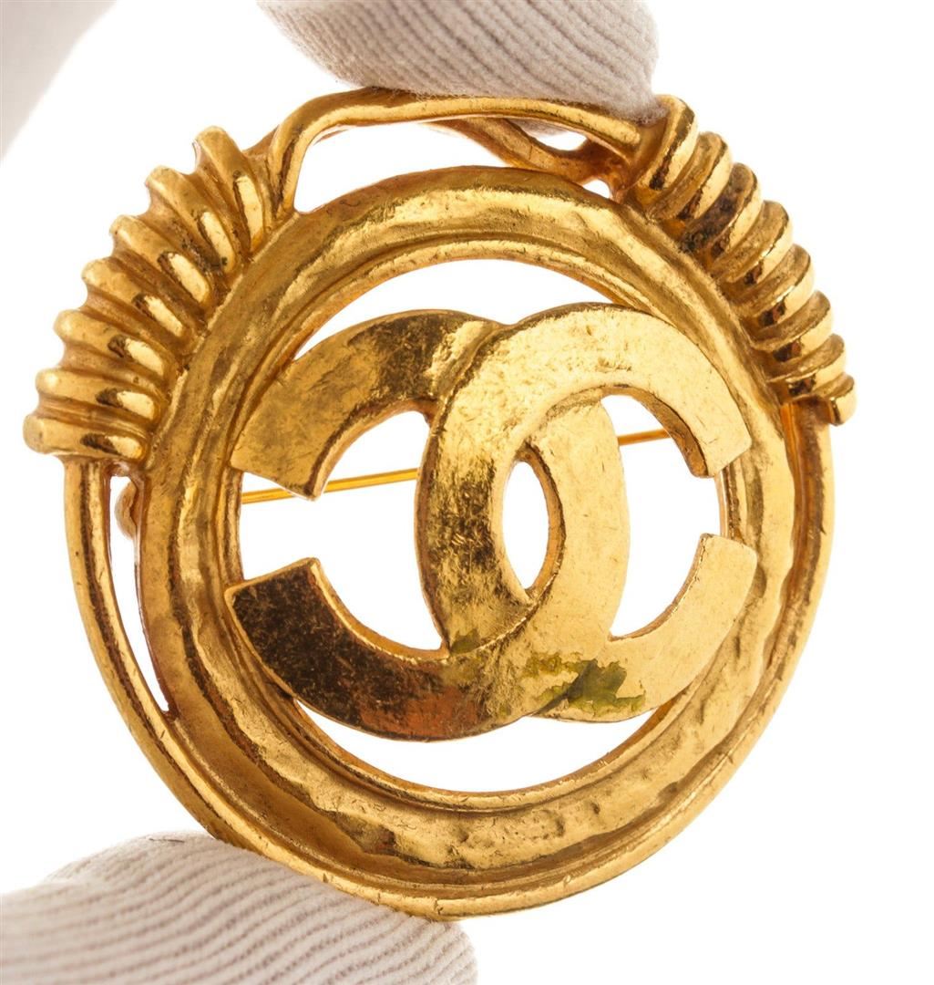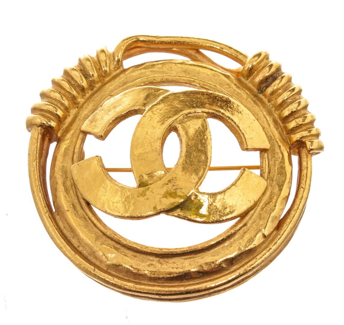 Chanel Gold Round CC Brooch with gold-tone hardware.