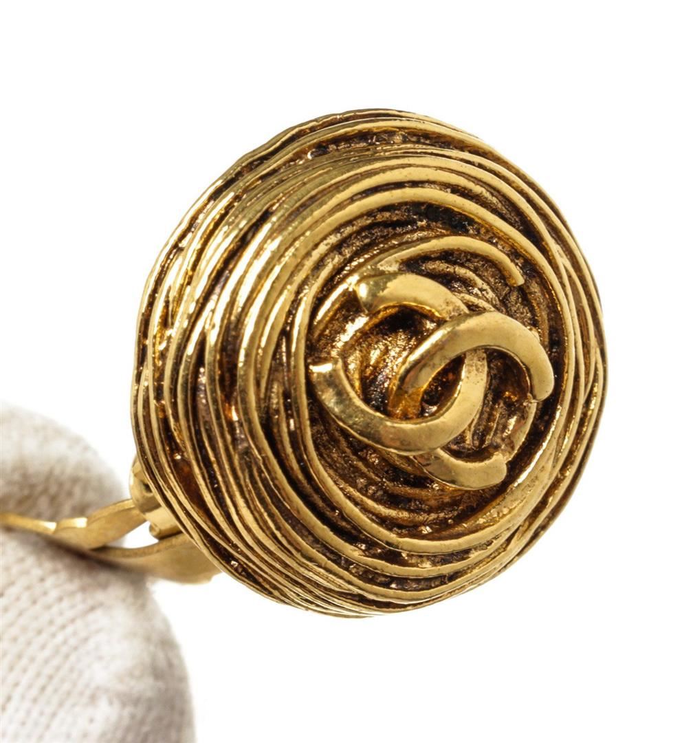 Chanel Gold Round Disc Earrings with gold tone hardware.