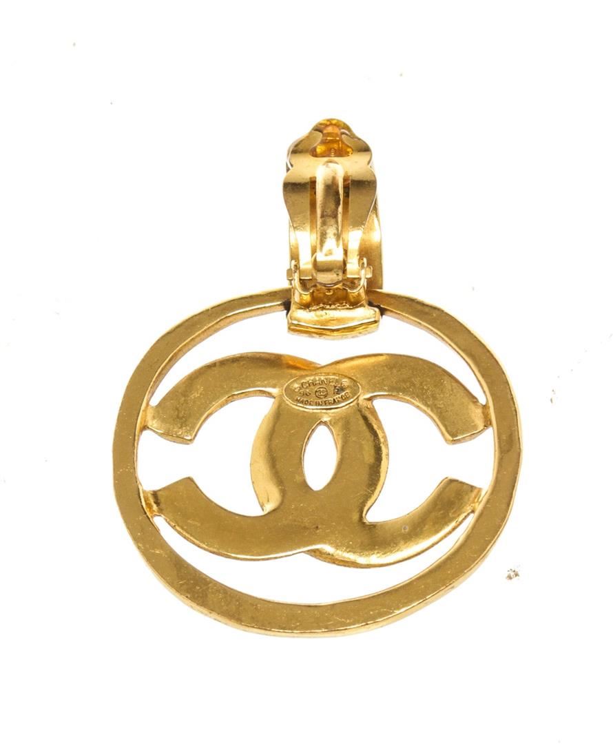 Chanel Gold Single Large CC Necklace with gold-tone brushed hardware, can be looped twice and clasp closure.