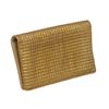 Gold Chanel wallet with silver-tone hardware, tonal leather interior with nude fabric lining, one with zip pull closure, dual bill compartment, eight card slots and fold closure flap. Authentic.