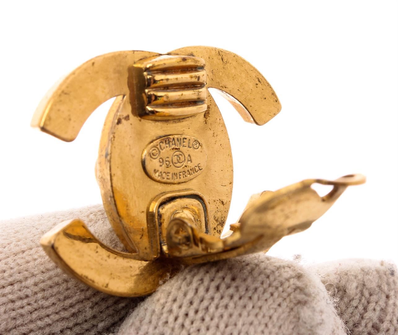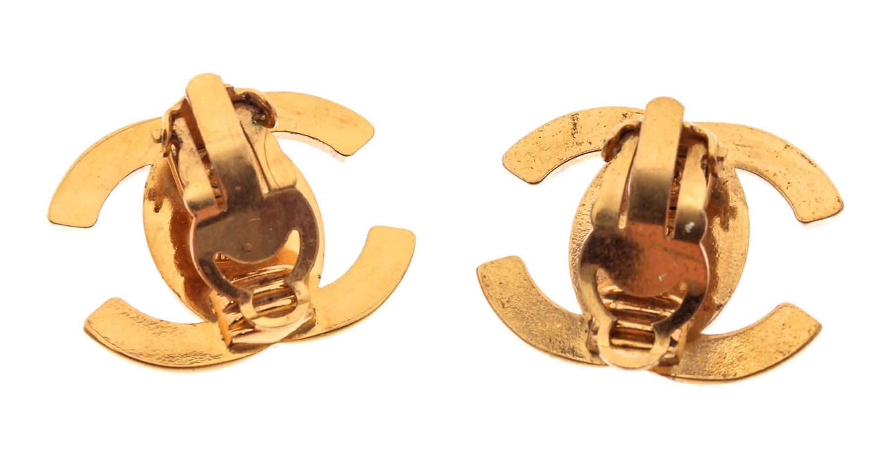 Gold-tone Chanel Turn-Lock CC logo earrings with clip-on closures.