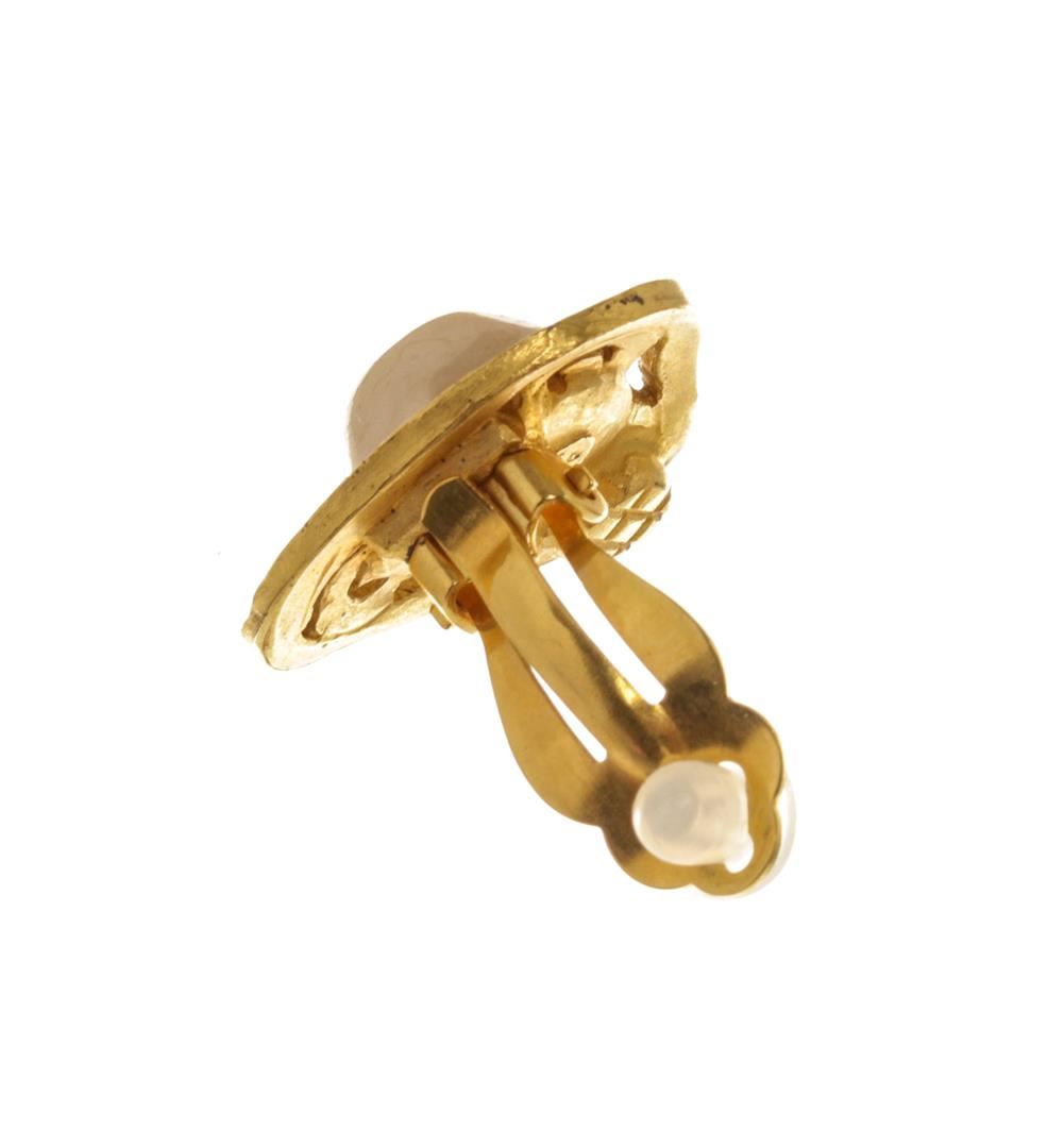 Chanel Gold Triangle Pearl Earrings. All available information is listed in the description and shown in the photos. Chanel Gold Triangle Pearl Earrings with faux pearls, gold tone metal hardware, and made in France.