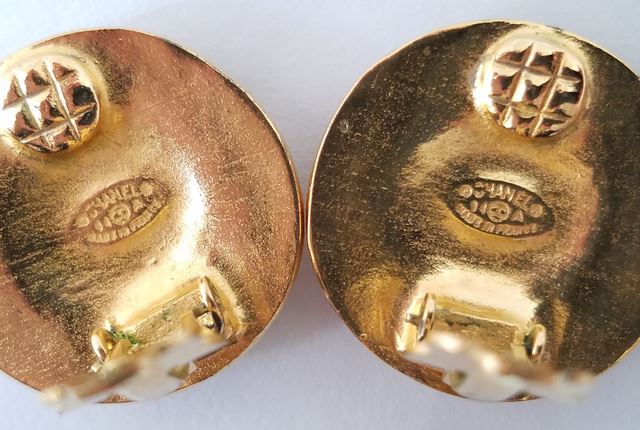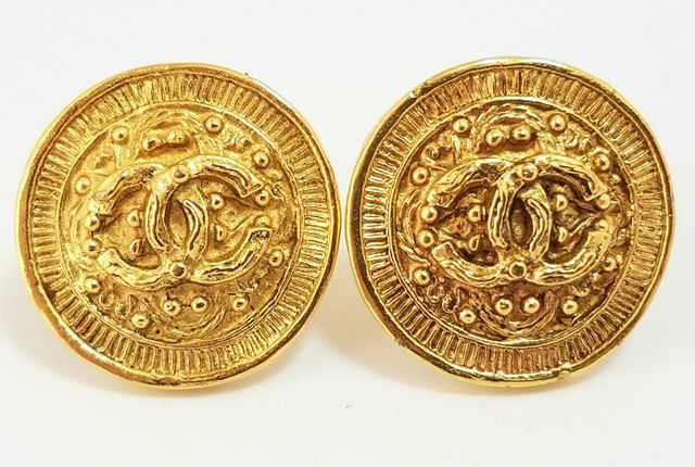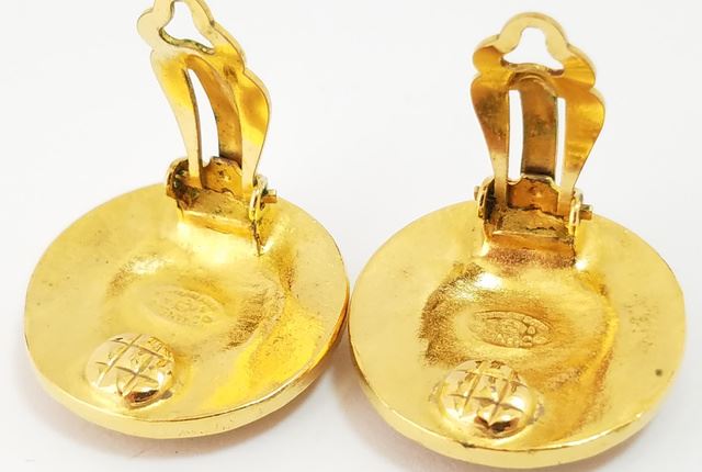 Chanel Gold-tone Metal CC Arabesque Logo Round Clip-on Earrings Earrings Gold Gold. Brand: Chanel, Style: Gold-tone Metal CC Arabesque Logo Round Clip-on Earrings, Type: Earrings, Exterior Color: Gold, Exterior Material: Gold, Closure: Clip on, Length: 1".25", Height: 1". Condition: Very good, some oxidation on edge of clasps. Additional Information: From the 2014 Fall Collection. Item is sold AS-IS and all information pertaining to this lot is available in the photos or this description.