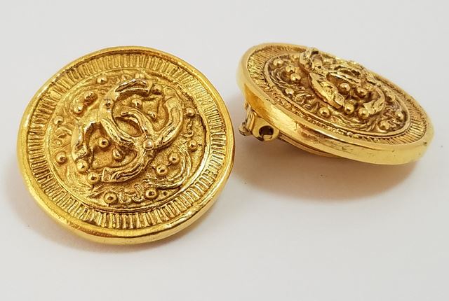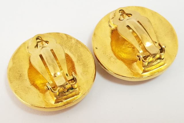 Chanel Gold-tone Metal CC Arabesque Logo Round Clip-on Earrings Earrings Gold Go