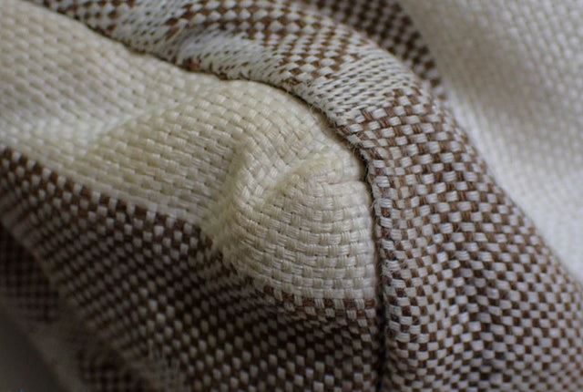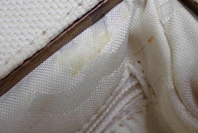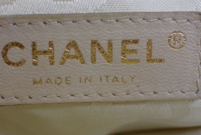 Chanel shoulder bag in grey and ivory striped linen and a wooden frame opening. This bag has a cute beach/nautical themed design with a wooden frame opening that can be pulled open with tabs on the front and back of the bag. The linen has large CC logos w