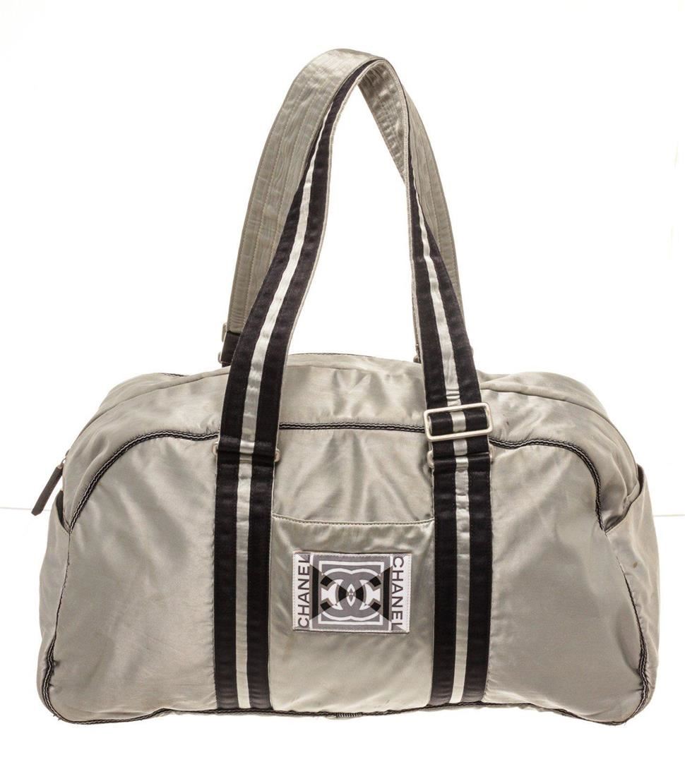 Chanel Grey Sports Line Bag with silver-tone hardware Interior zip pockets and zip top closure.