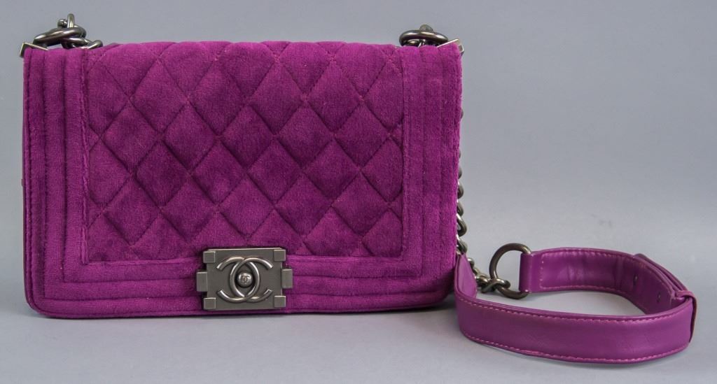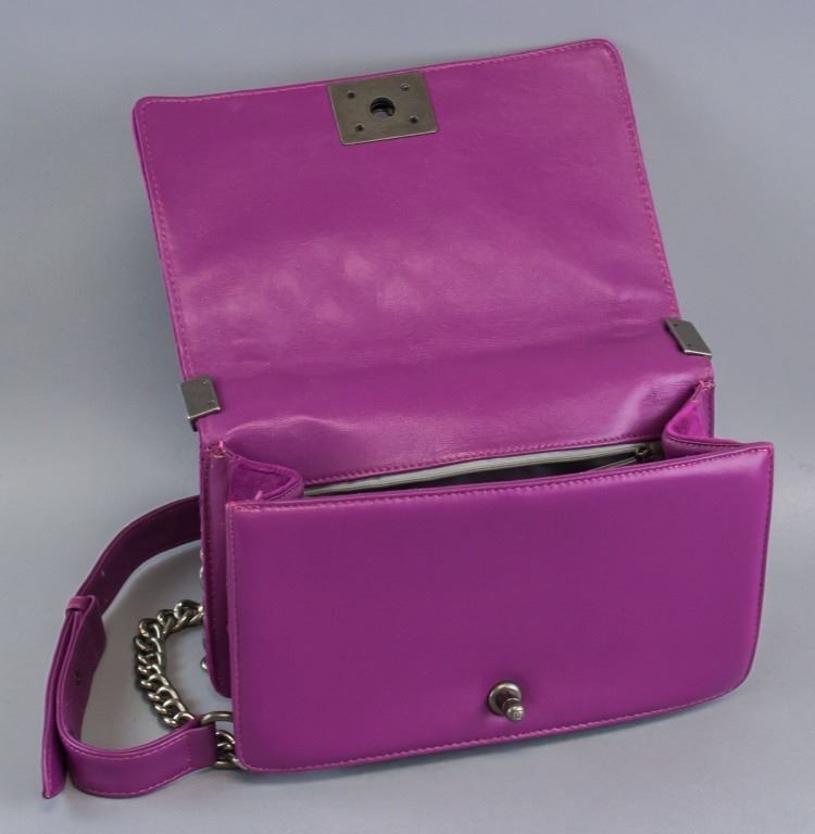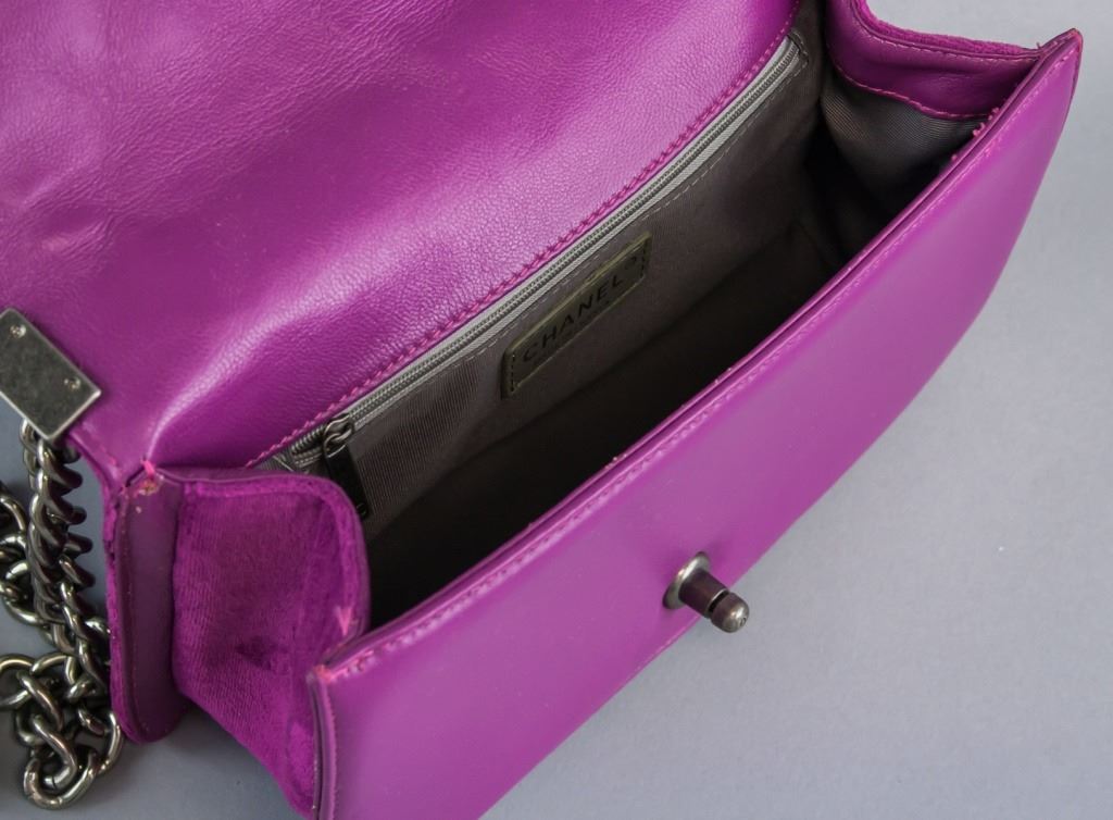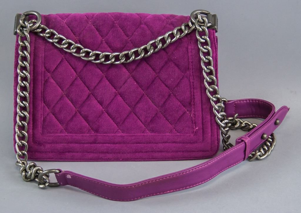 Women's handbag. Of purple tone. With Chanel branding. 16 x 25 cm. 554 grams.