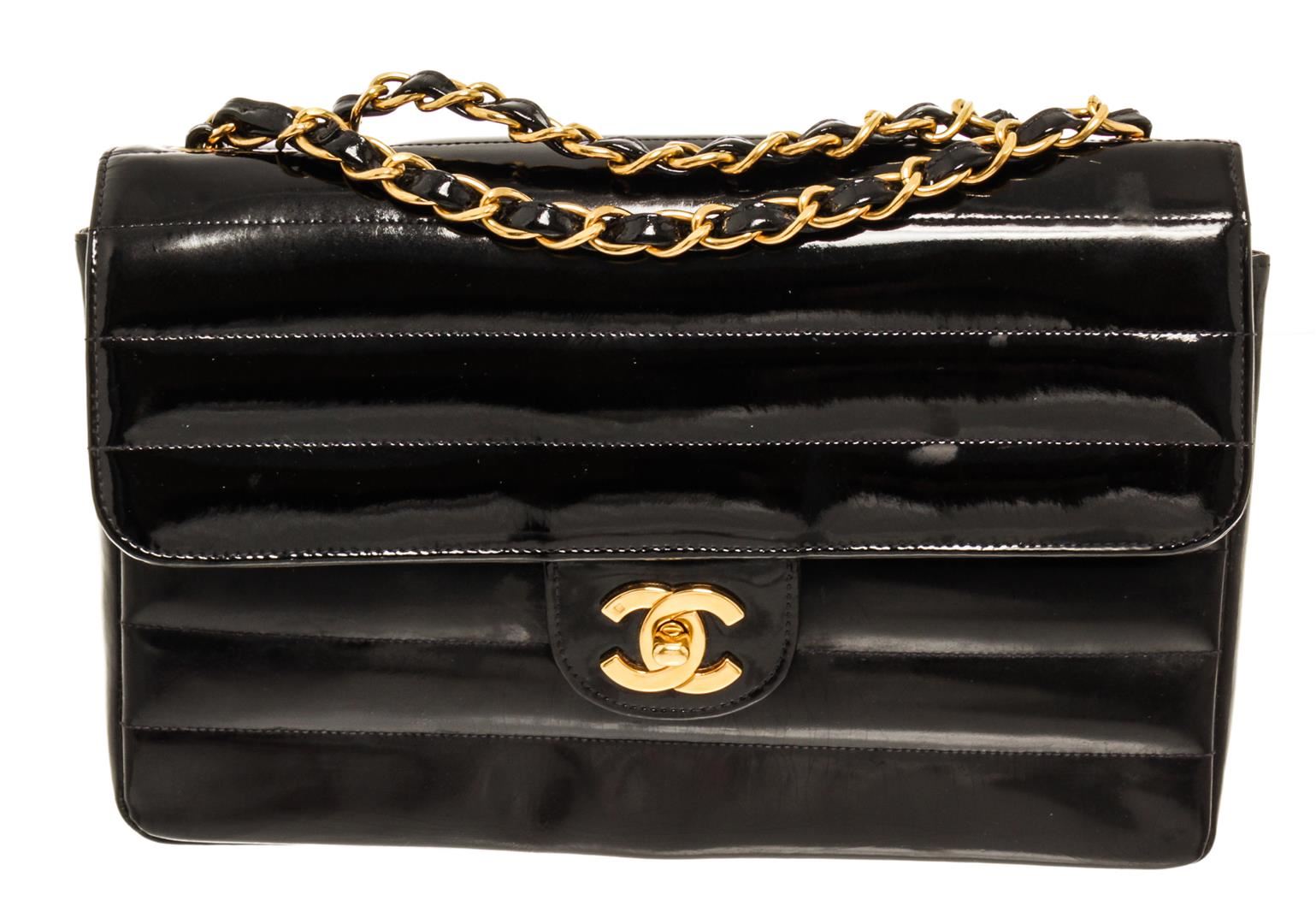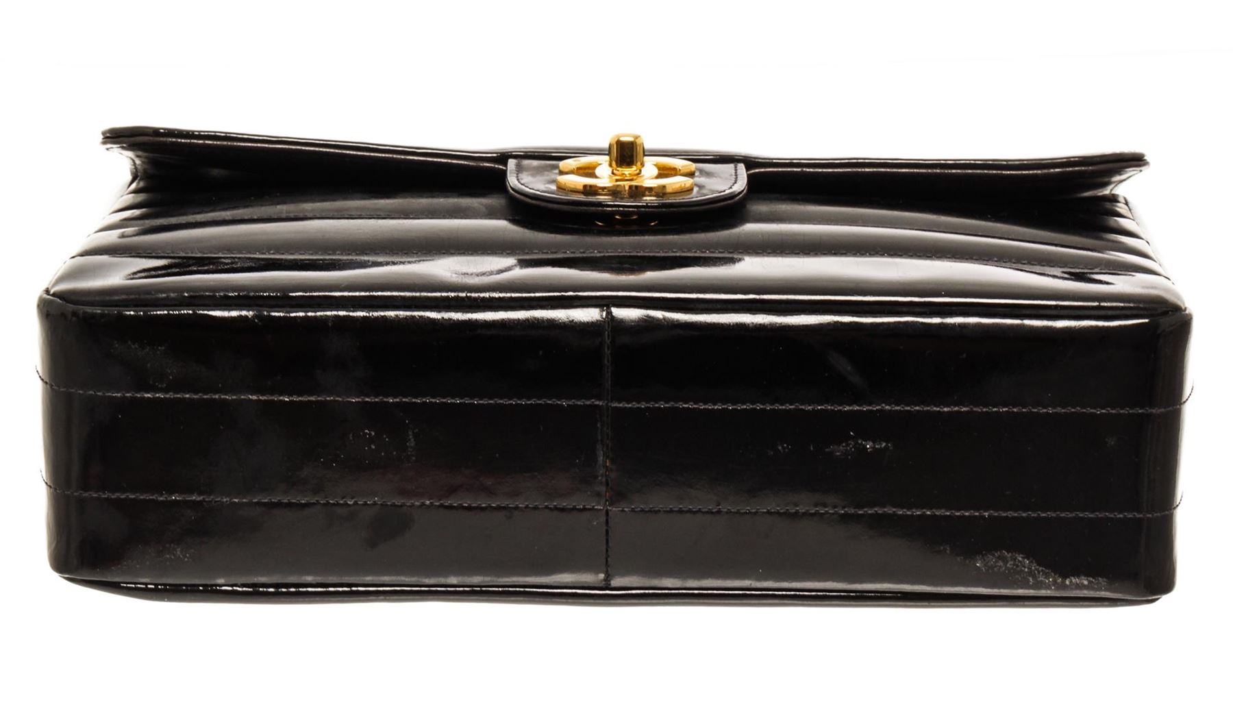 Chanel Horizontal Quilt Jumbo Single Flap Shoulder BAg. Brand: Chanel, Style: Horizontal Quilt Jumbo Single Flap, Type: Shoulder BAg, Exterior color: Black, Exterior material: Lambskin, Interior color: Black, Interior material: Patent Leather, Length: 12,