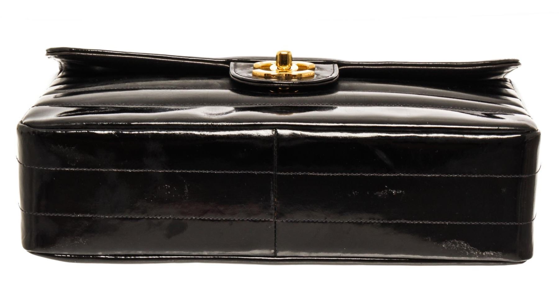 Chanel Horizontal Quilt Jumbo Single Flap Shoulder BAg. Brand: Chanel, Style: Horizontal Quilt Jumbo Single Flap, Type: Shoulder BAg, Exterior color: Black, Exterior material: Lambskin, Interior color: Black, Interior material: Patent Leather, Length: 12,