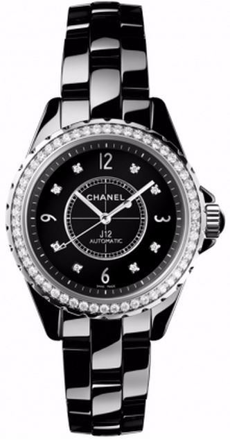 Model: H3109 - CASE = [Material:Ceramic], [Case Diameter:38], [Case Thickness:10.8mm], [Bezel:Fixed With Diamonds], [Case Back:Solid], [Water Resistant:50 Meters - 165 Feet], [Crystal:Scratch Resistant Sapphire],; DIAL = [Color:Black],; MOVEMENT = [Type:Automatic], [Crown:Push Down],; BAND = [Clasp:Hidden Folding Clasp], [Type:Black Ceramic], (Usually ships in 1 to 2 weeks.)