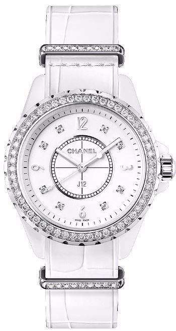 Model: H4190 - CASE = [Material:Ceramic], [Case Diameter:33], [Case Thickness:10mm], [Bezel:Fixed with Diamonds], [Case Back:Solid], [Water Resistant:200 Meters - 660 Feet], [Crystal:Scratch Resistant Sapphire],; DIAL = [Color:White],; MOVEMENT = [Type:Quartz], [Crown:Push In],; BAND = [Clasp:Tang], [Type:White Alligator Leather], (Usually ships in 1 to 2 weeks.)