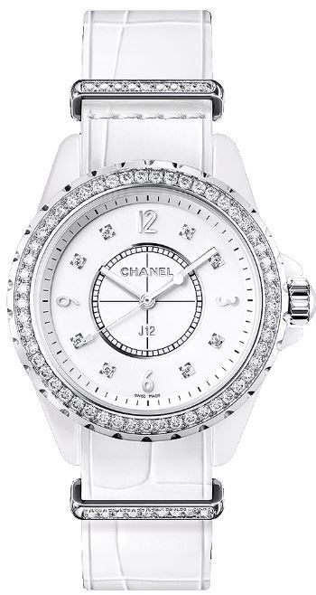 Model: H4190 - CASE = [Material:Ceramic], [Case Diameter:33], [Case Thickness:10mm], [Bezel:Fixed with Diamonds], [Case Back:Solid], [Water Resistant:200 Meters - 660 Feet], [Crystal:Scratch Resistant Sapphire], DIAL = [Color:White], MOVEMENT = [Type:Quartz], [Crown:Push In], BAND = [Clasp:Tang], [Type:White Alligator Leather], (Usually ships in 1 to 2 weeks.)