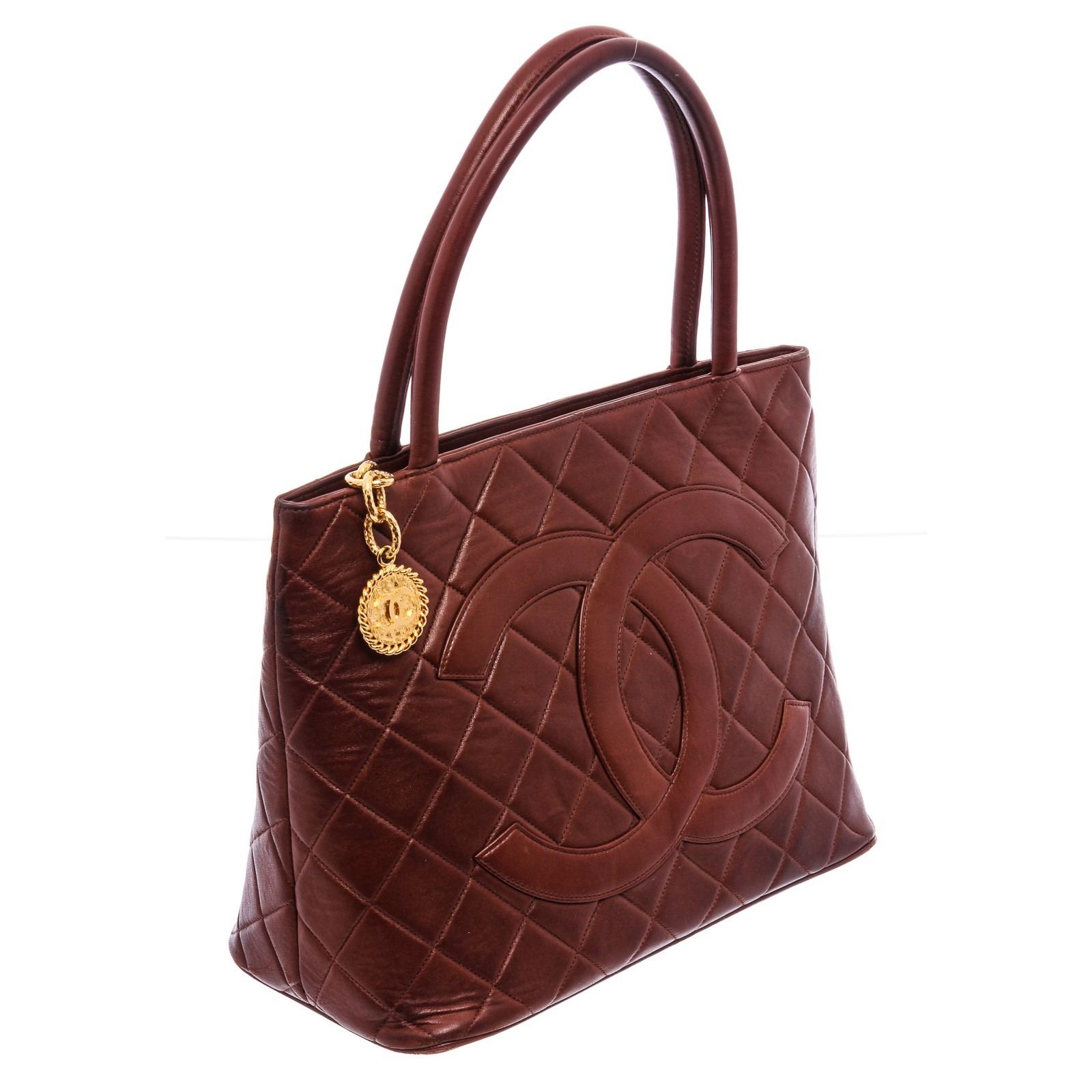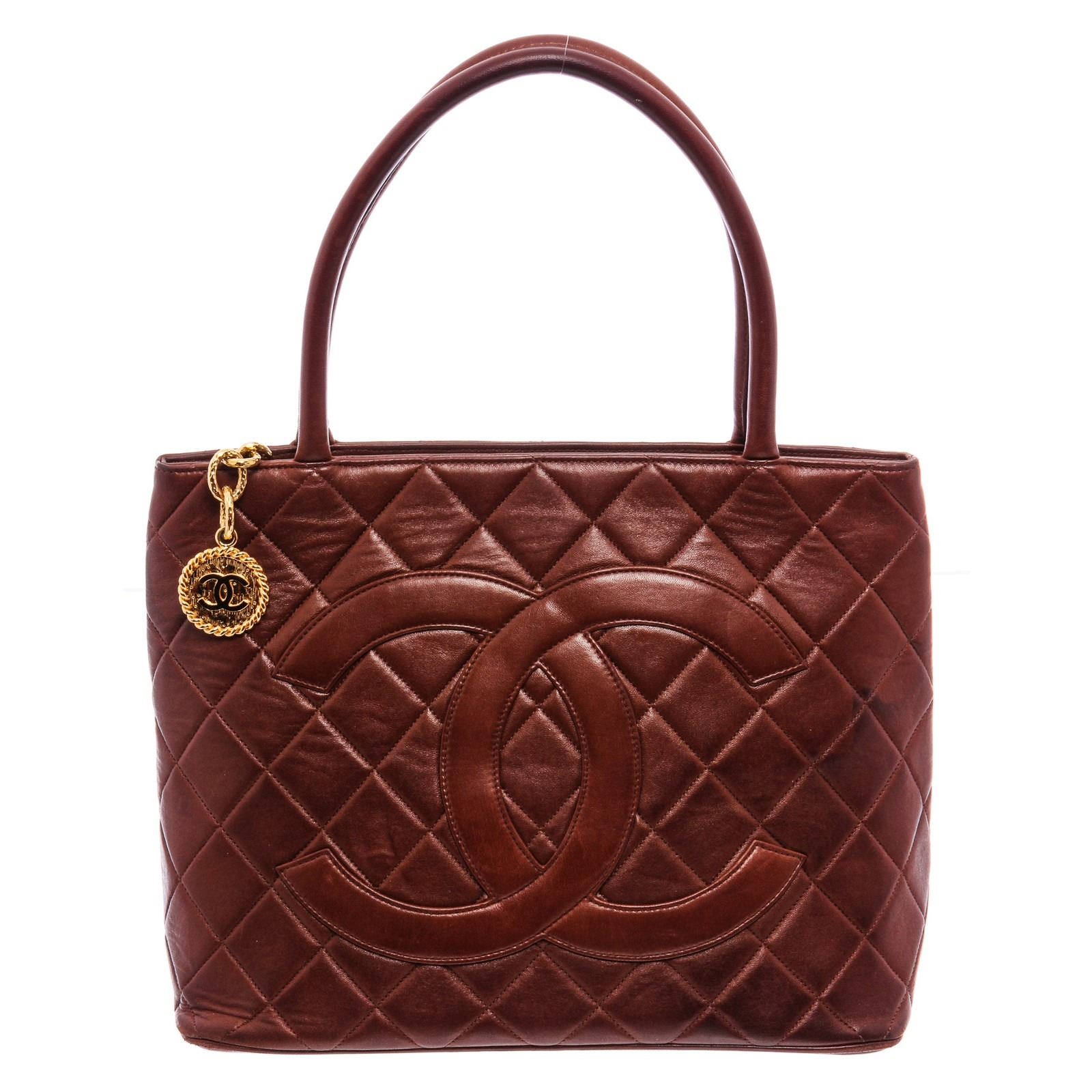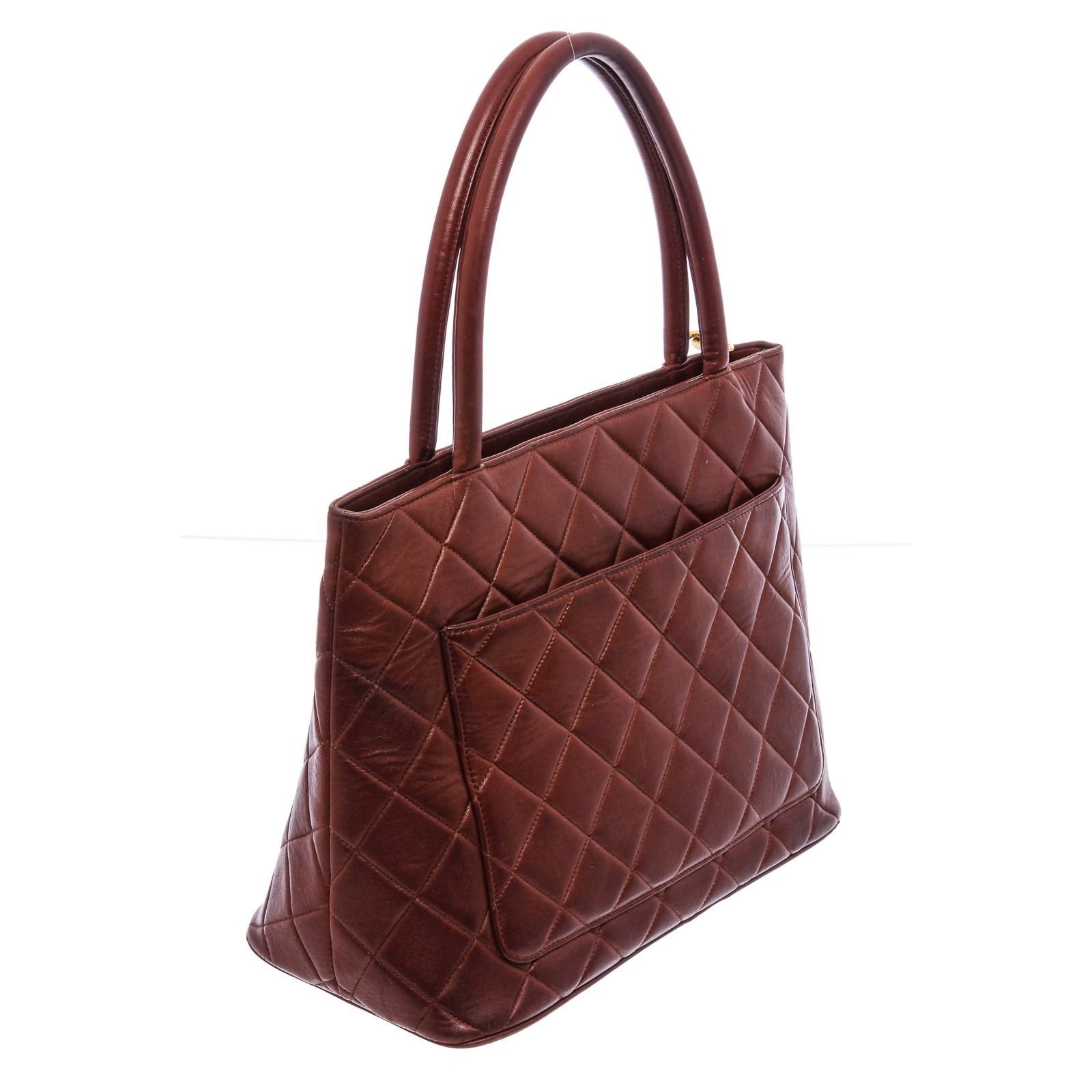 Style: Chanel Brown Quilted Lambskin Leather Medallion Tote Bag