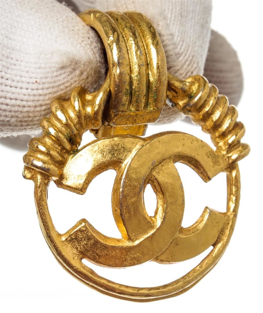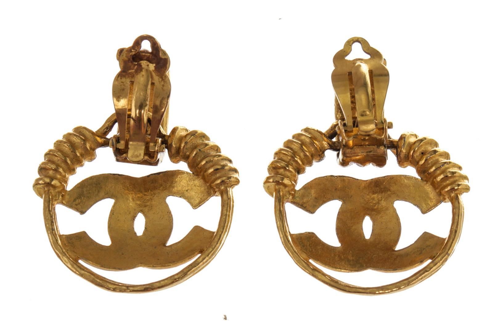 One Chanel Large CC Braided Earrings. Item is sold AS-IS. All available information is listed in the description and shown in the photo. Chanel Gold Round CC Braided Earrings with gold-tone hardware and plug closure.