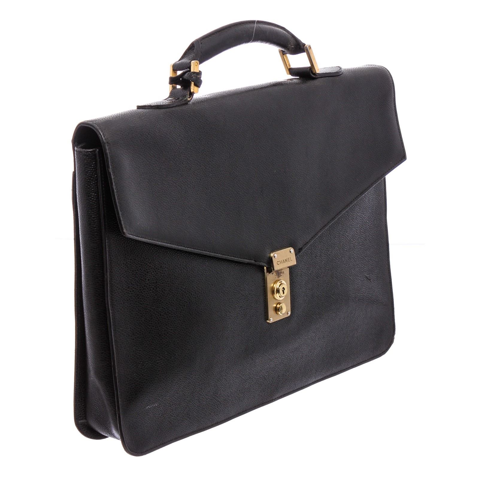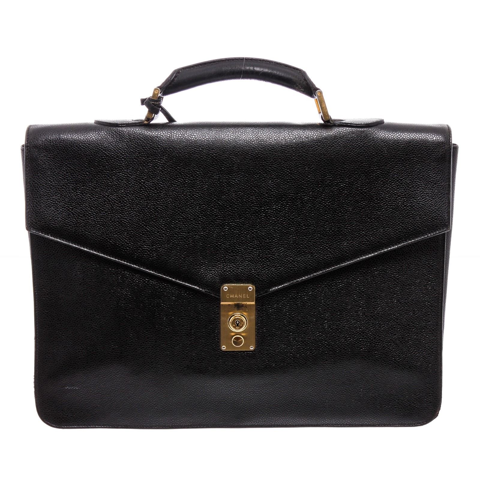 Style: Chanel Vintage Black Caviar Leather Briefcase Bag