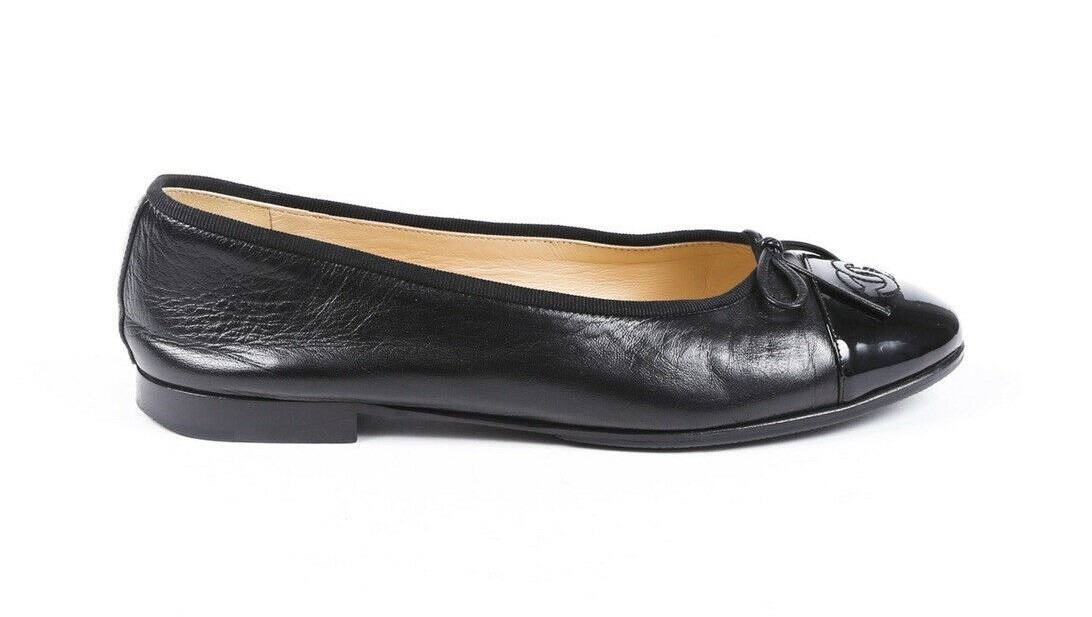 Style: Chanel Leather CC Cap Toe Ballet Flats