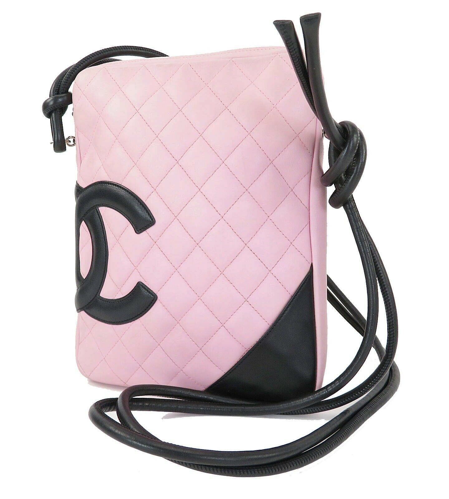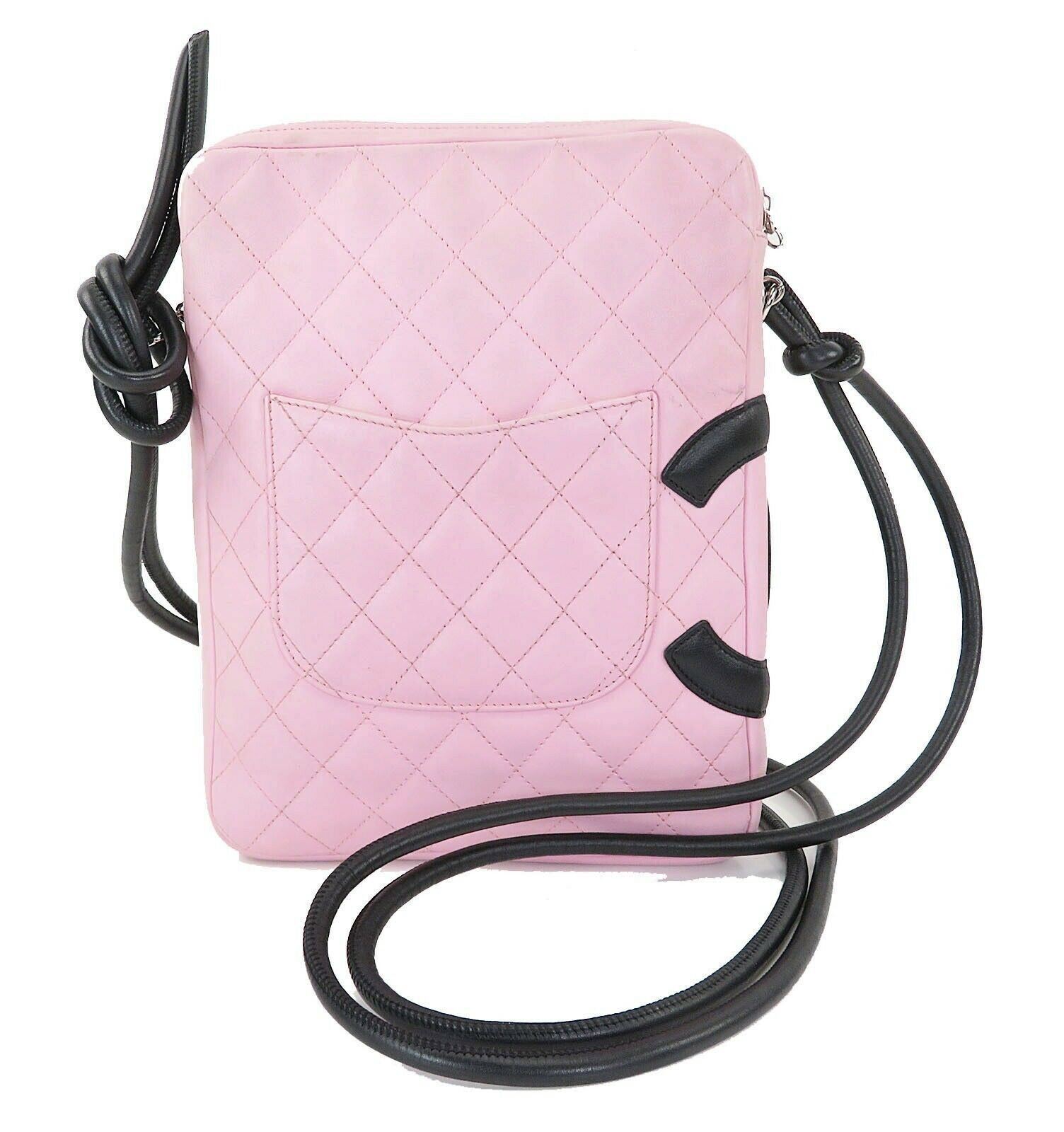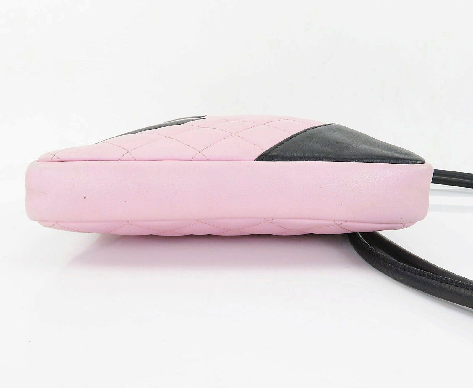 Description: CHANEL Cambon Line CC Quilted Pink Leather Shoulder Bag Purse . One outside open pocket.