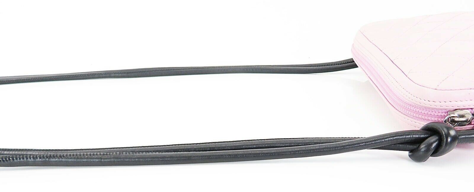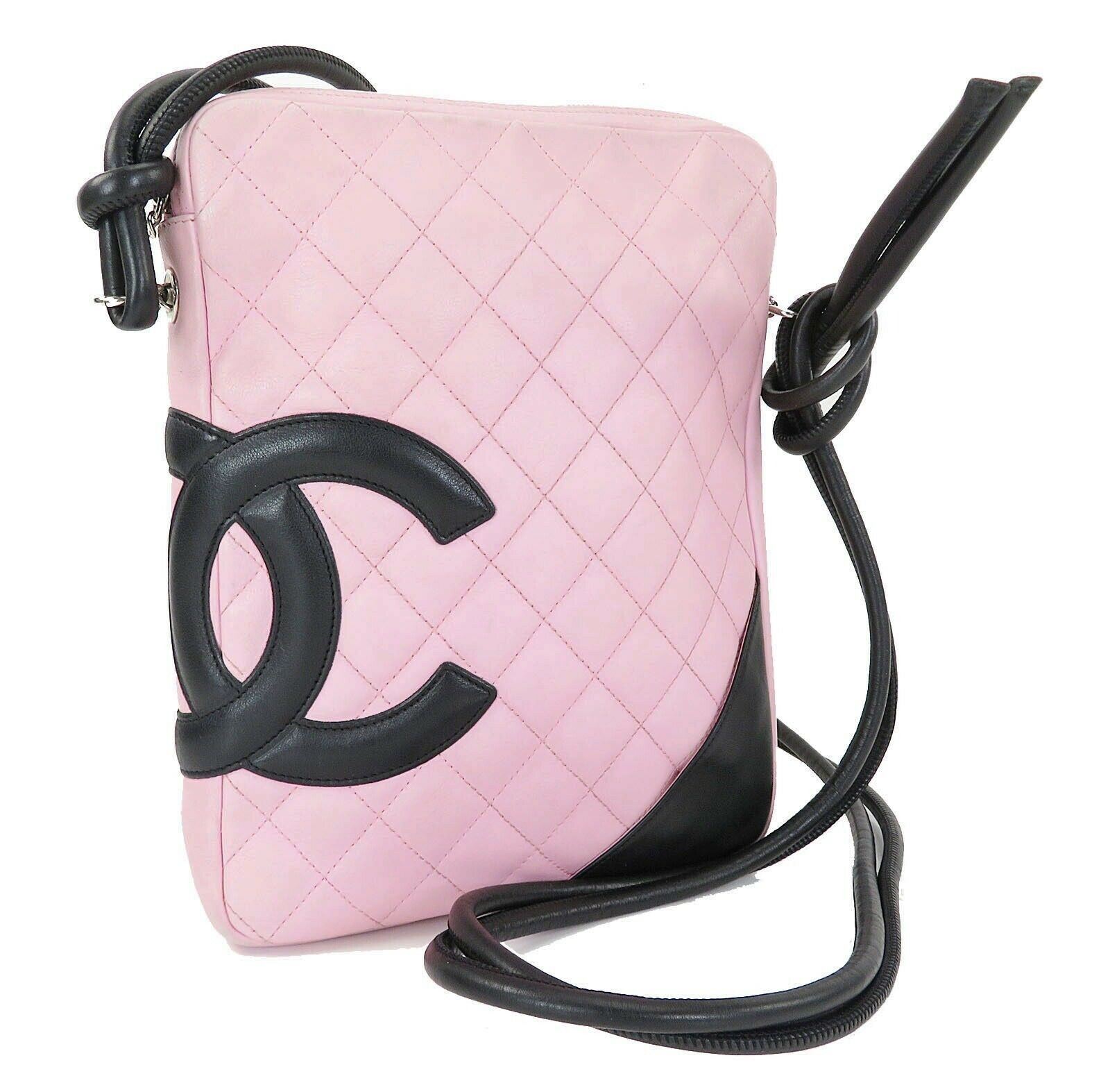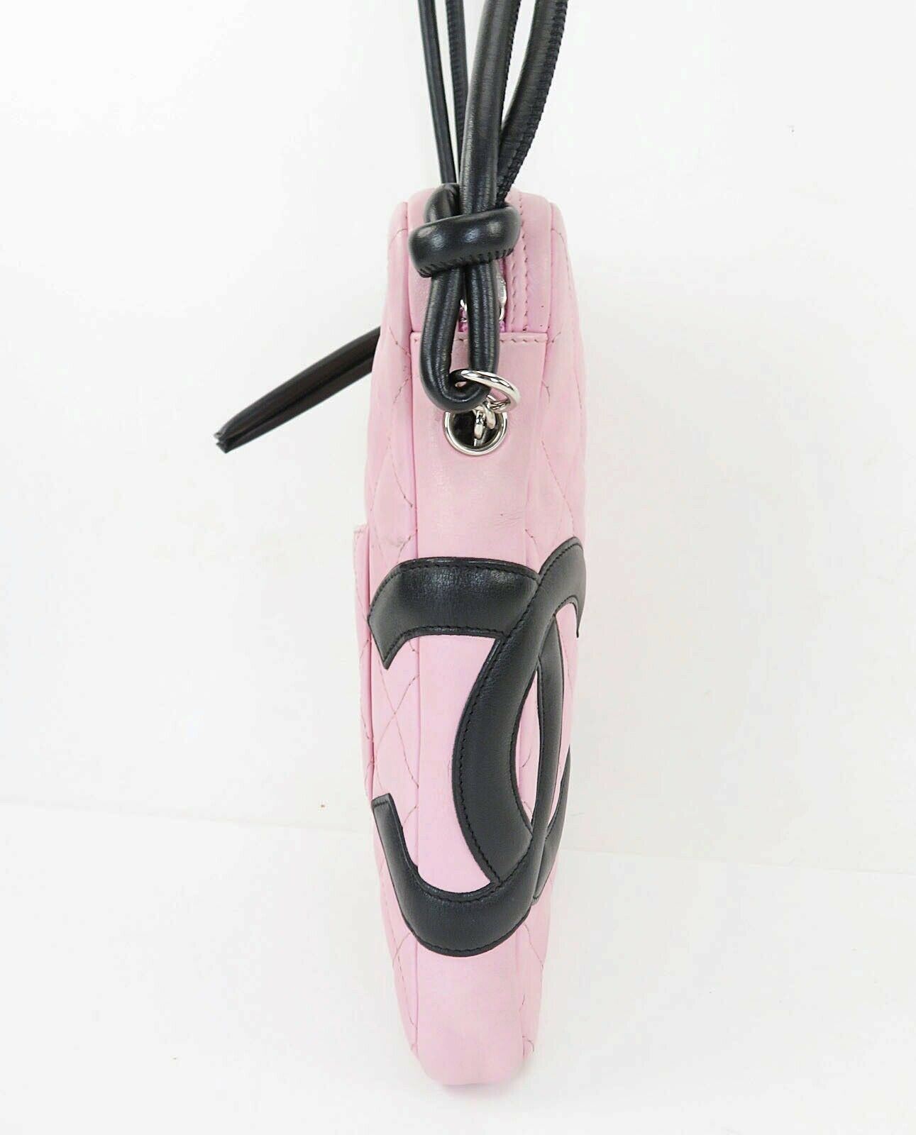 Description: CHANEL Cambon Line CC Quilted Pink Leather Shoulder Bag Purse . One outside open pocket.
