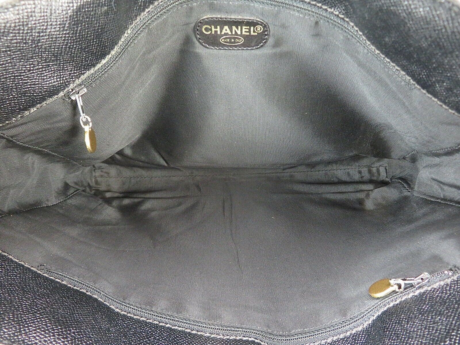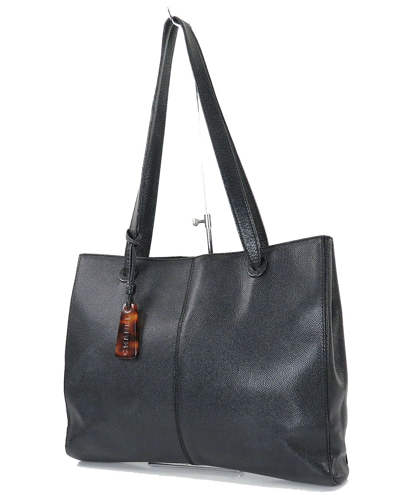 Description: CHANEL Black Leather Tote Shoulder Bag Purse.