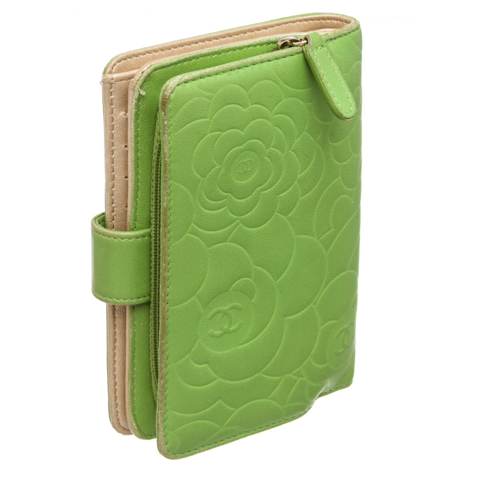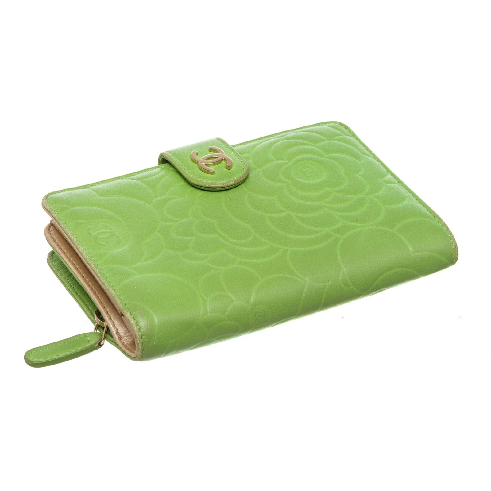 Style: Chanel Green Camelia Leather French Purse Wallet