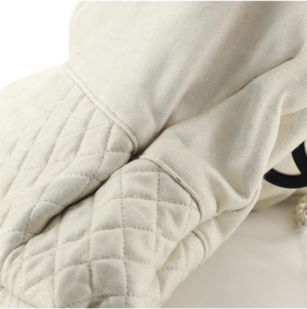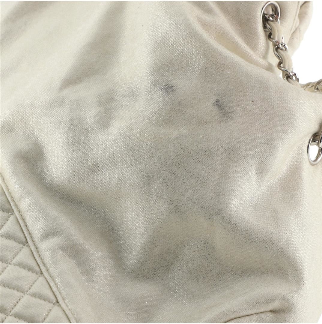 Chanel Melrose Cabas Tote Jersey Large Neutral. Please see photos and description for all available information! Chanel Melrose Cabas Tote Jersey Large Beige Jersey Condition Details: Moderate discoloration and stains on exterior and handles, scratches o