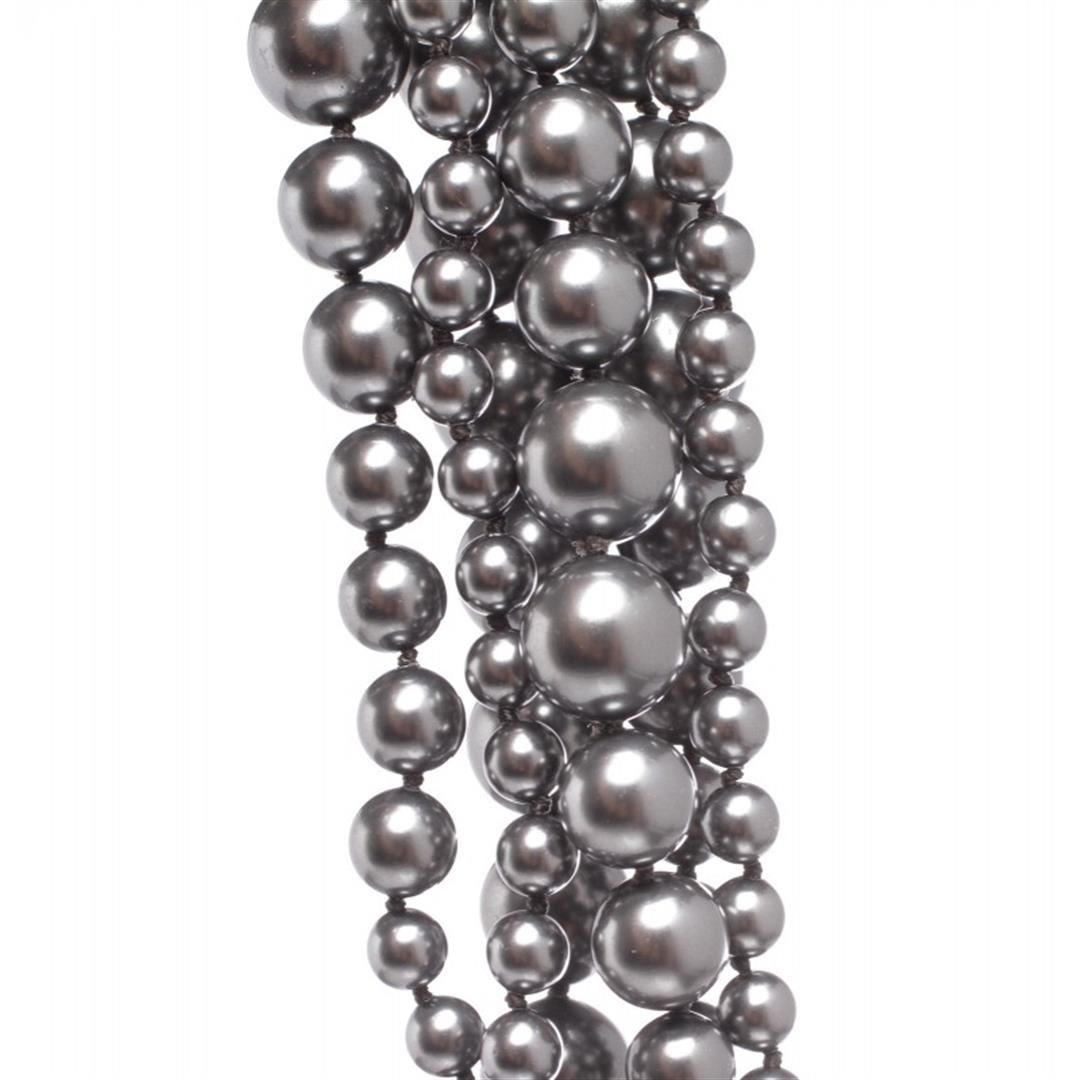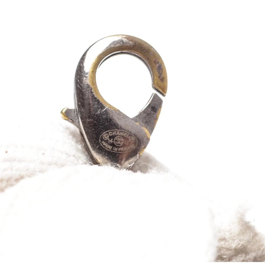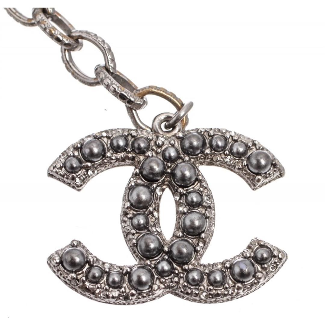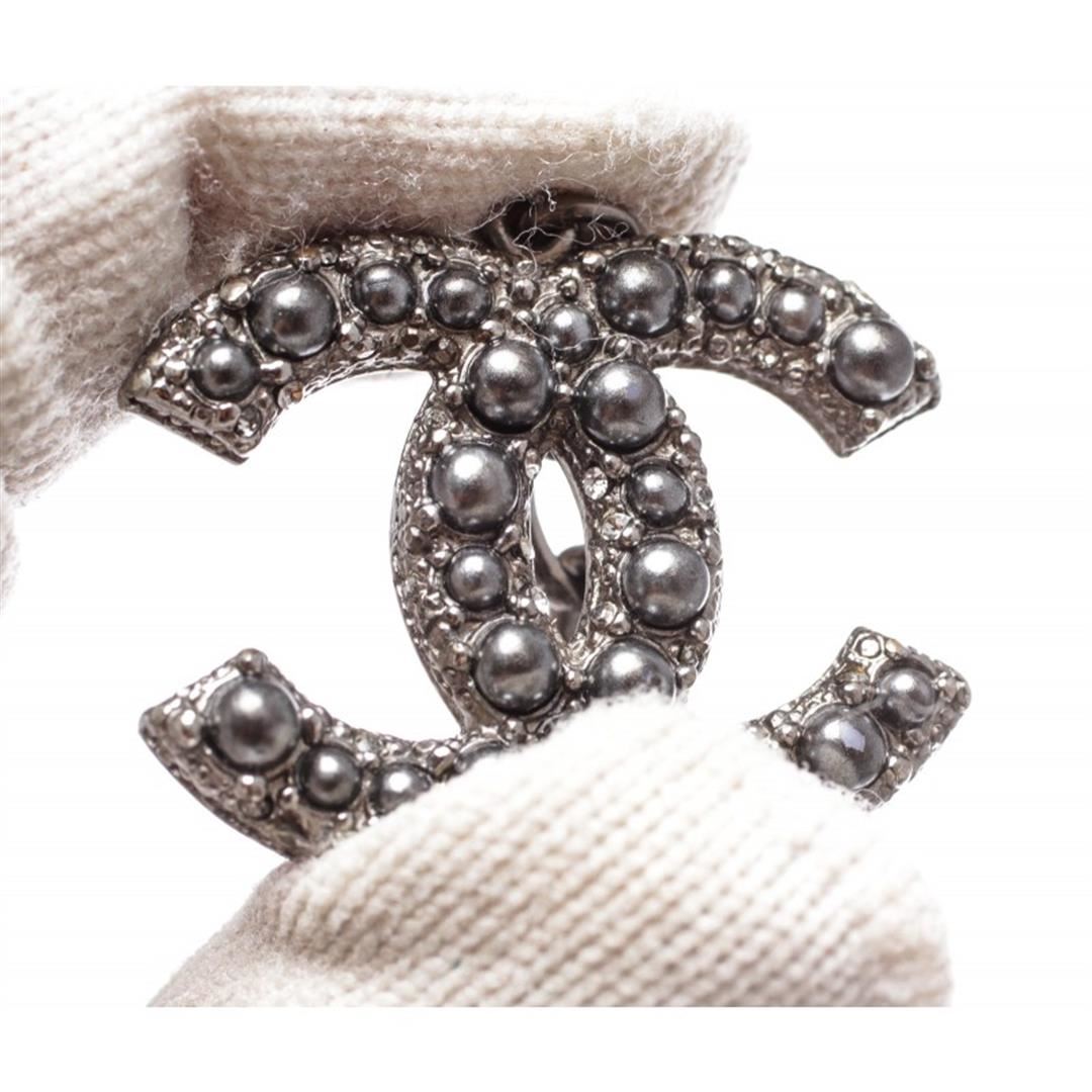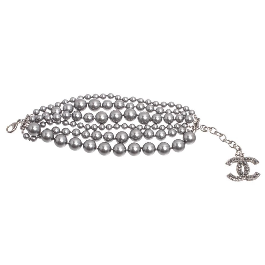 Metallic Gray Chanel 6 strand faux pearl bracelet with CC gray pearl charm. Item is pre-owned.