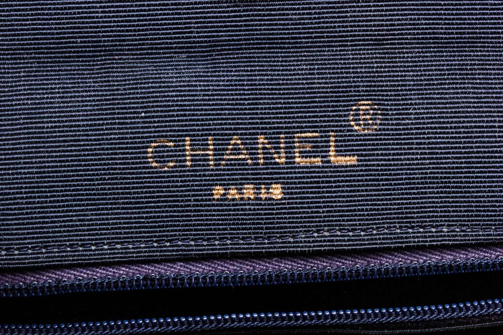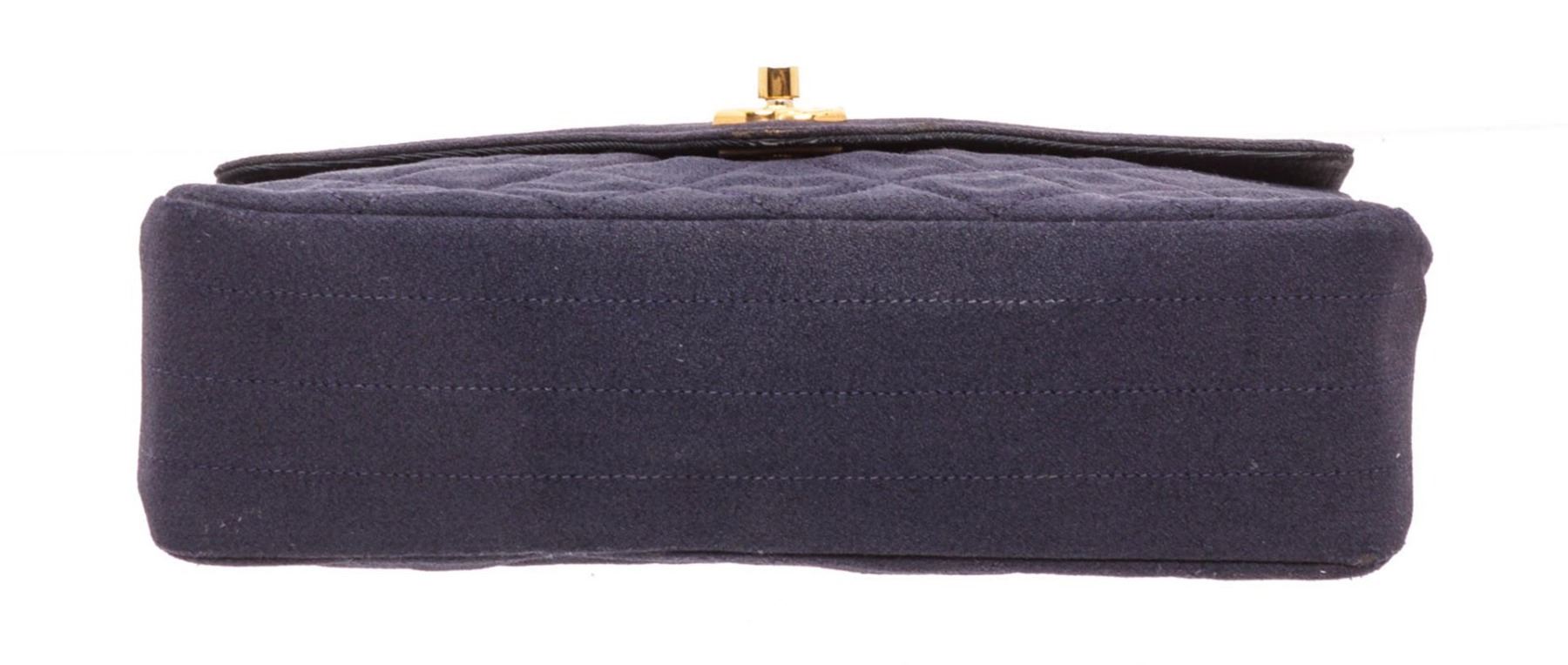 Chanel Navy Blue Fabric Envelope Flap Crossbody Bag. All available information is listed in the description and shown in the photos. Chanel Navy Blue Fabric Envelope Flap Crossbody Bag with gold-tone hardware, single chain-link and leather shoulder strap, blue fabric lining, single slit pocket at interior wall, CC turn-lock closure at front flap. 28338Measurements: Length: 8 in / 20 cm Width: 1.25 in / 3 cm 5.25 in / 13 cm Condition: Pre-Owned Good overall, please see photographs for detail.