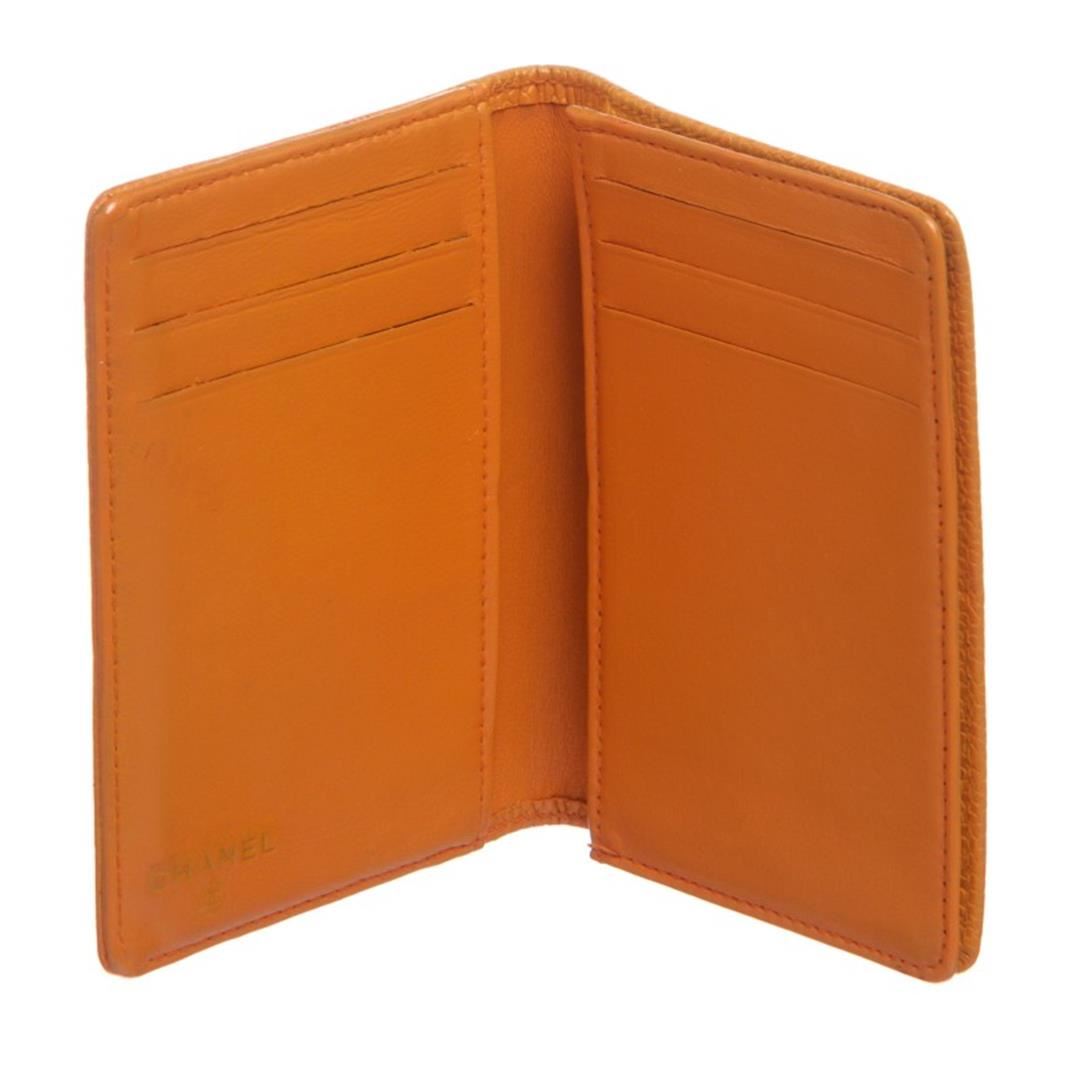 Overall flap bifold closure. Interior is leather lined and contains six credit cardip pockets. Exterior contains CC stitching on back. Item is pre-owned.