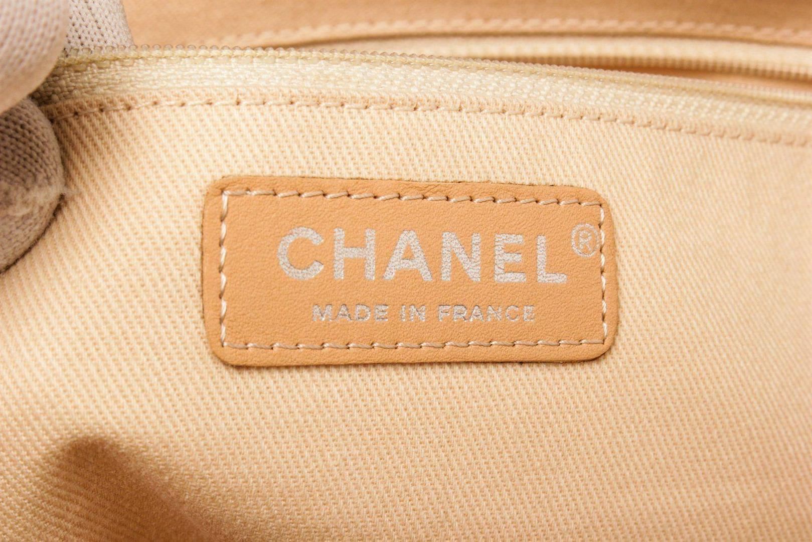 Chanel Peach Caviar Leather CC Camelia Shop Bag with Caviar leather, gold-tone hardware, interior zip & slip pocket, Leather shoulder strap and flap closure.