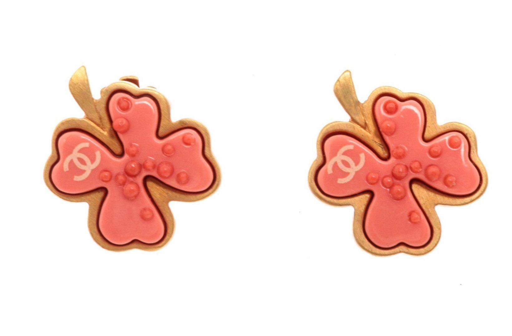 Chanel Pink Gold Leaf Earring with gold-tone hardware and turn lock closure. MEASUREMENTS: Length 1.2 in / 3 cm Width 0.1 in / 0 cm Height 1.2 in / 3 cm Condition: Pre-Owned Good overall, please see photographs for detail.