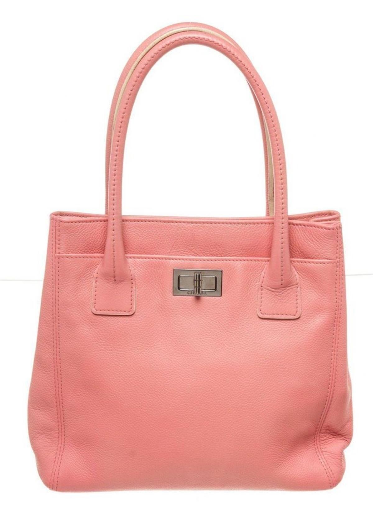 Chanel Pink Leather Small Shopper Bag. Chanel Pink Leather Small Shopper Bag with material leather, gold-tone hardware, interior slip pockets, shoulder strap and snap closure.